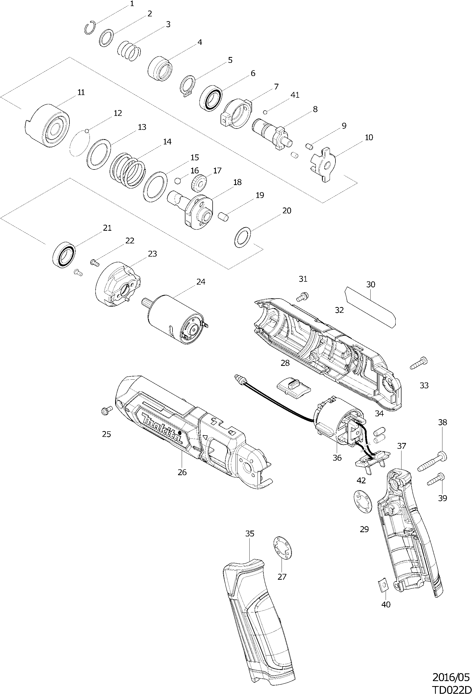 Spare parts list of model Makita TD022D
