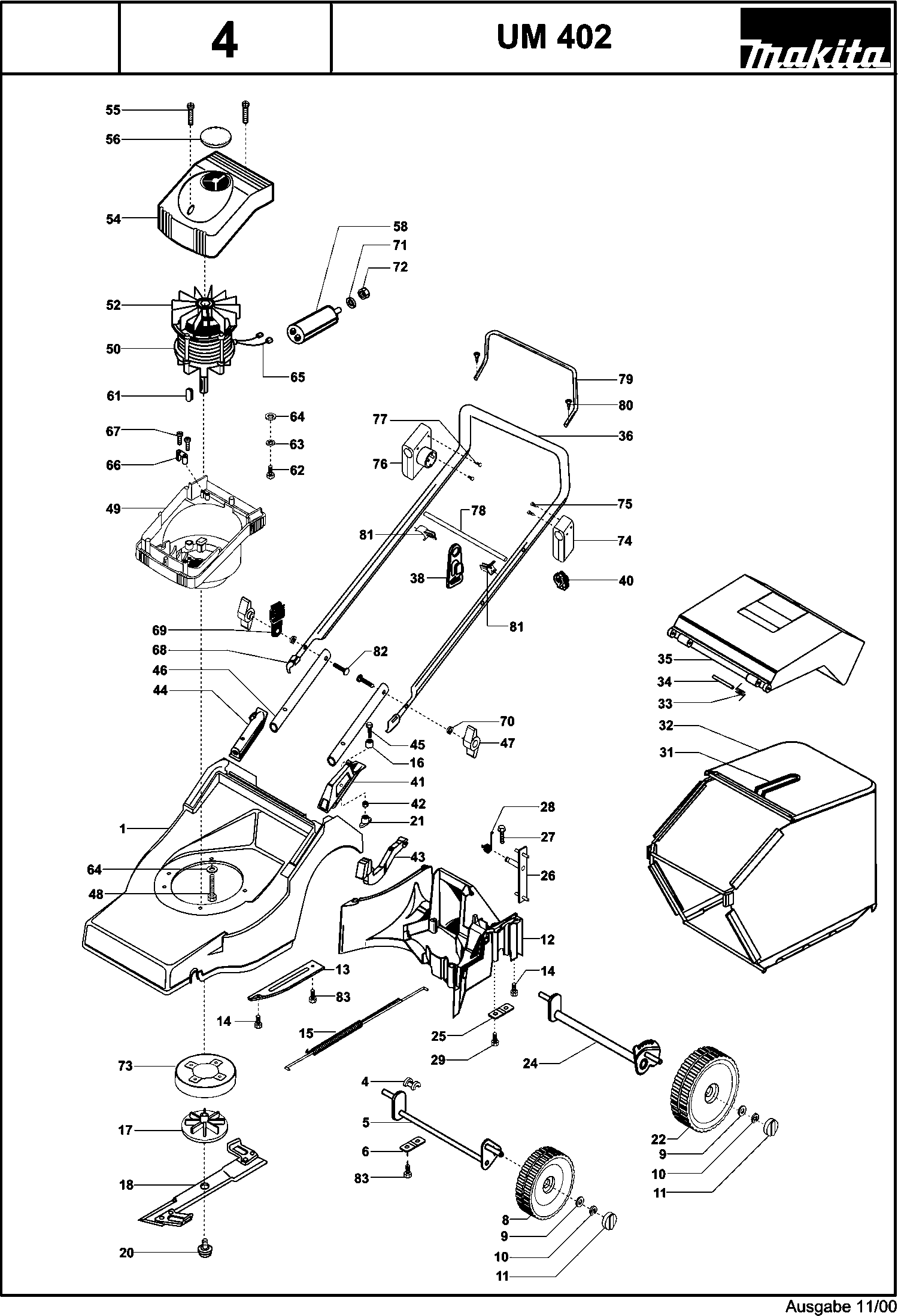 Here you will find all available parts and drawings of the 'Makita UM402'. From here you can order all desired parts directly. Many parts must be ordered from the manufacturer, depending on the brand, this takes one to four weeks. All the information we have is on our website, we cannot advise you on what you need, for that you will need to return the machine for repair. Please note the following when ordering: