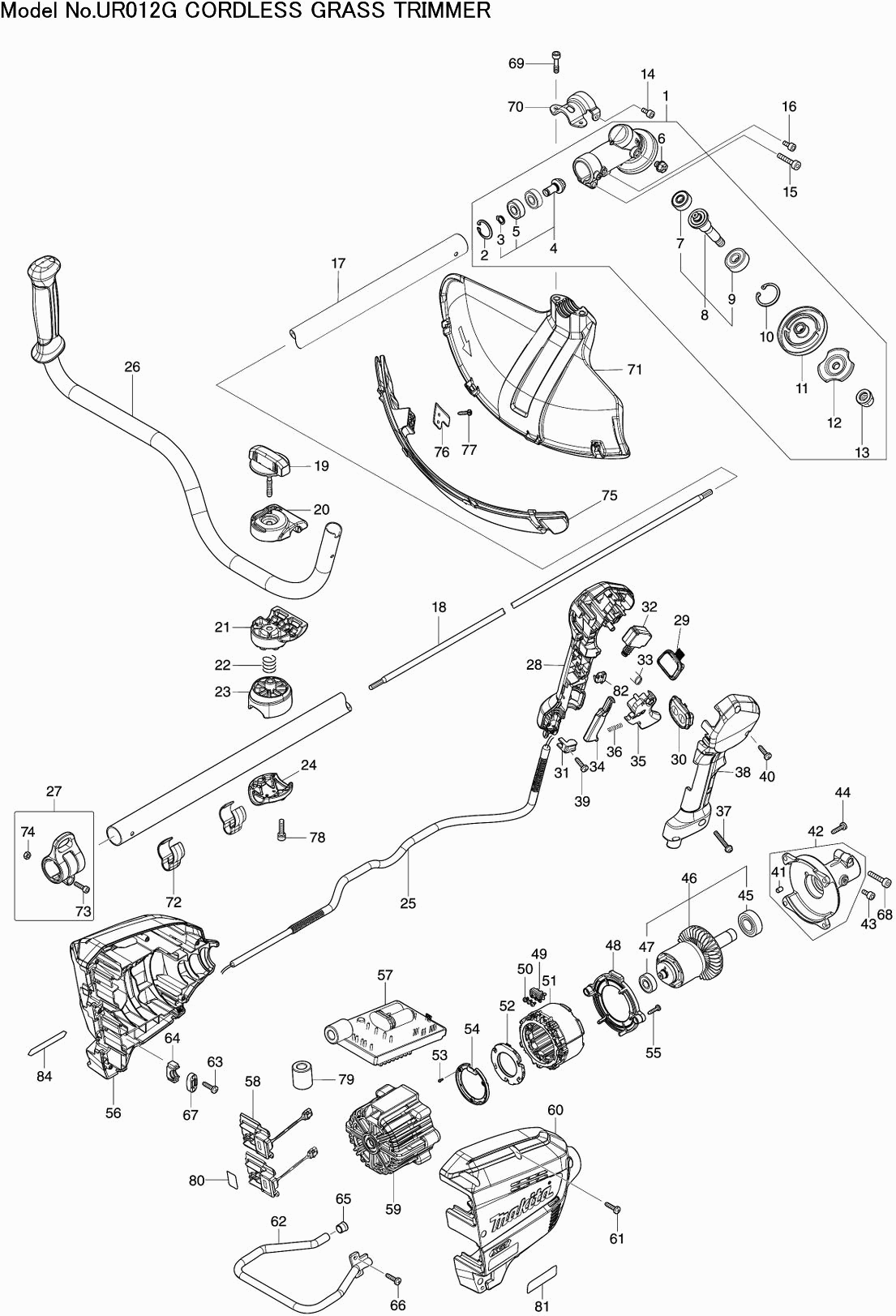 Technical drawing of model Makita UR012G