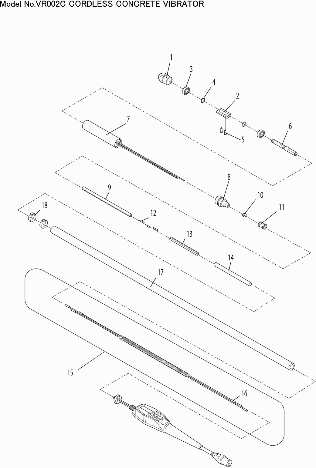 Technical drawing of model Makita VR002C
