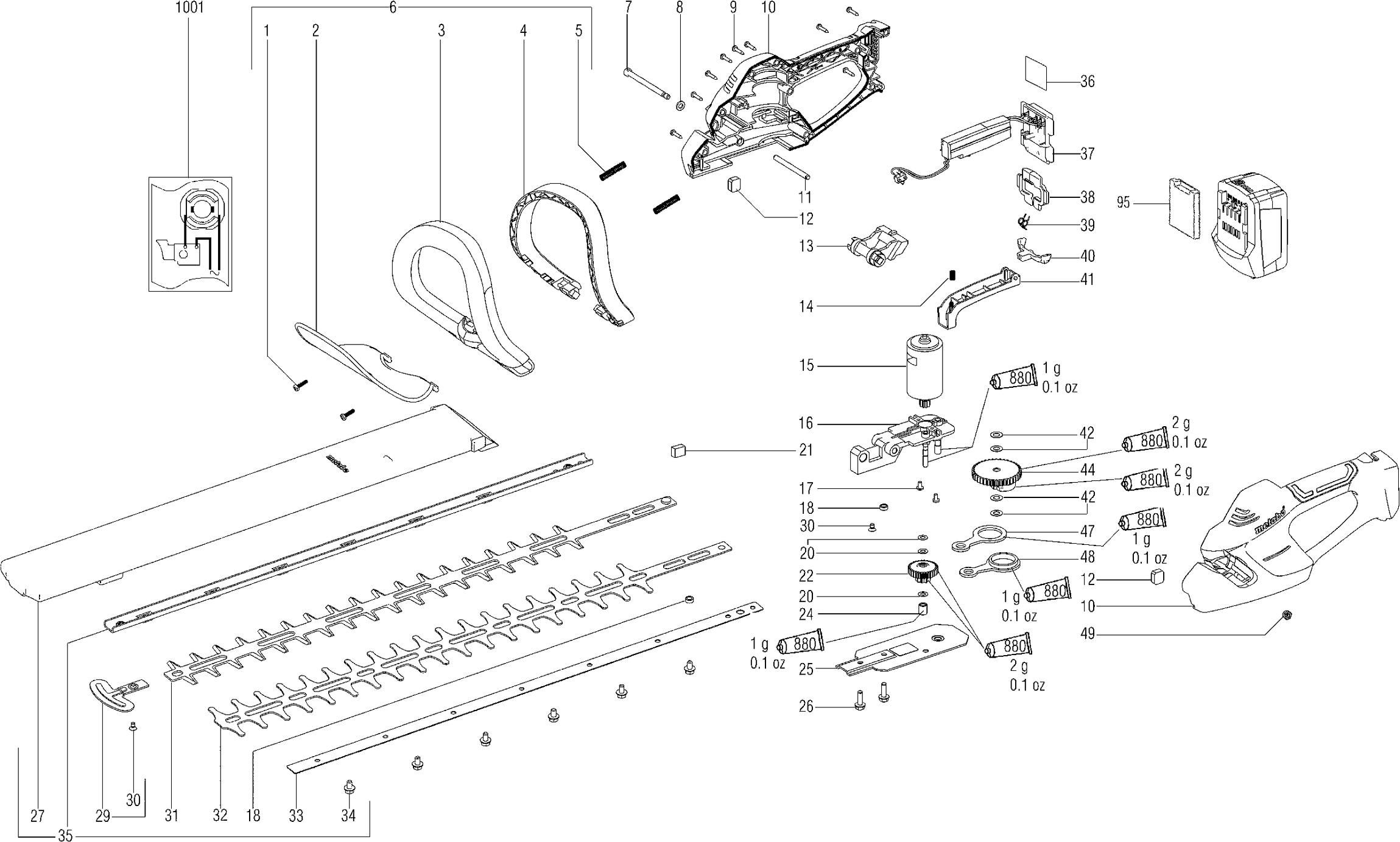 Here you will find all available parts and drawings of the 'Metabo 00467000 ( AHS18-65V )'. From here you can order all desired parts directly. Many parts must be ordered from the manufacturer, depending on the brand, this takes one to four weeks. All the information we have is on our website, we cannot advise you on what you need, for that you will need to return the machine for repair. Please note the following when ordering: