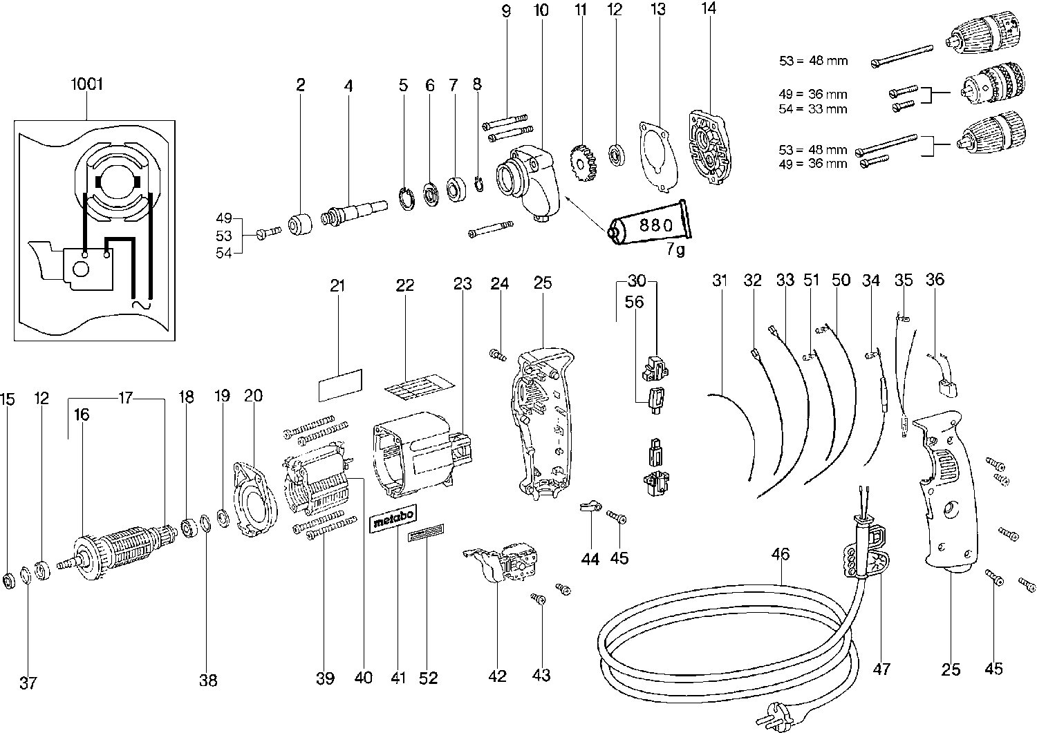 Technical drawing of model Metabo 00531000 ( BE530R+L )