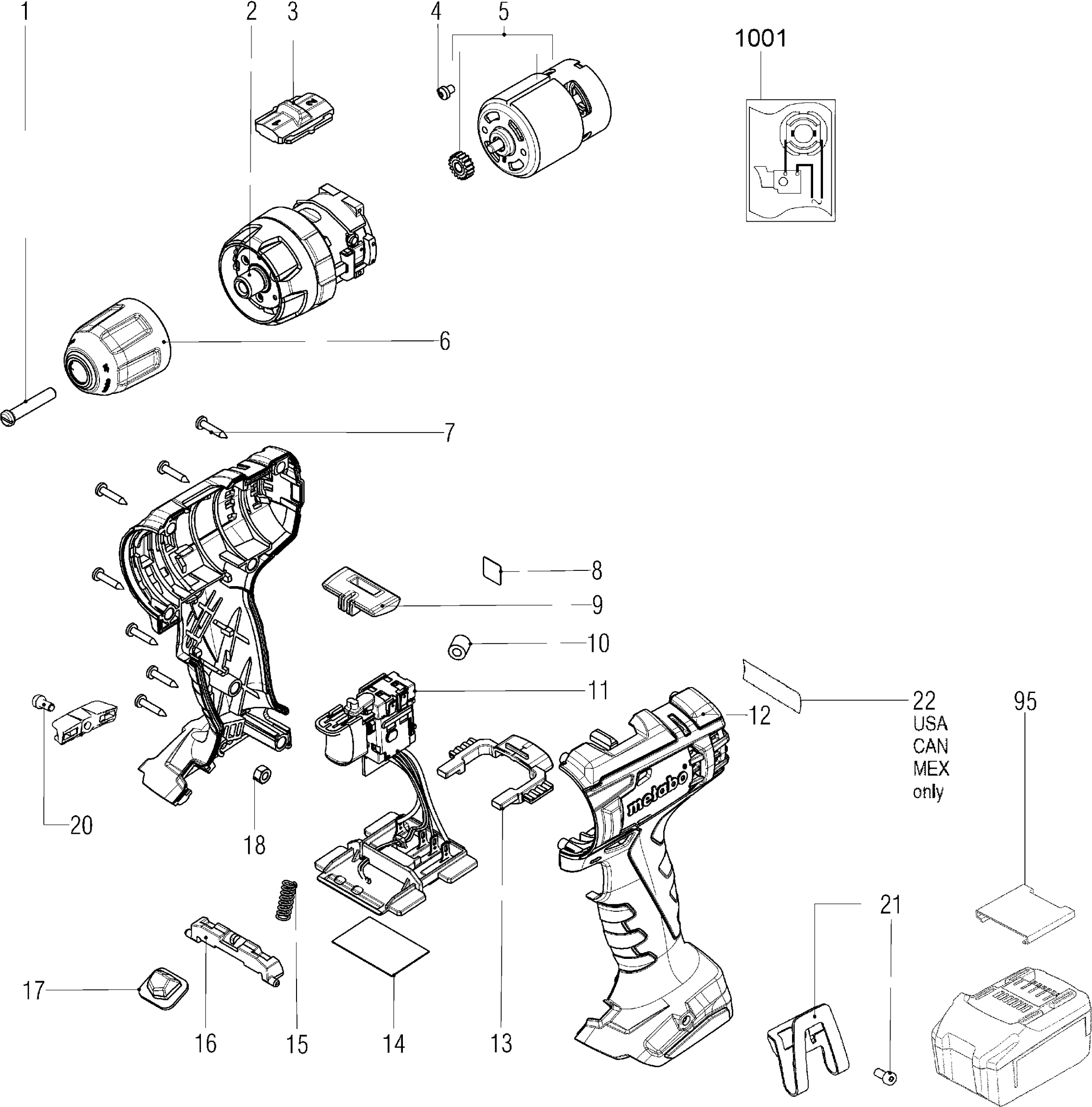 Here you will find all available parts and drawings of the 'Metabo 02321000 ( BS18L )'. From here you can order all desired parts directly. Many parts must be ordered from the manufacturer, depending on the brand, this takes one to four weeks. All the information we have is on our website, we cannot advise you on what you need, for that you will need to return the machine for repair. Please note the following when ordering: