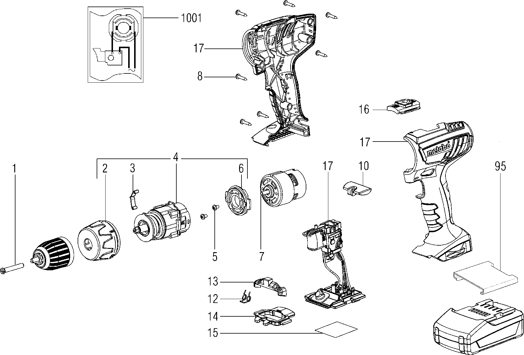 Here you will find all available parts and drawings of the 'Metabo 02116000 ( BS18LI )'. From here you can order all desired parts directly. Many parts must be ordered from the manufacturer, depending on the brand, this takes one to four weeks. All the information we have is on our website, we cannot advise you on what you need, for that you will need to return the machine for repair. Please note the following when ordering: