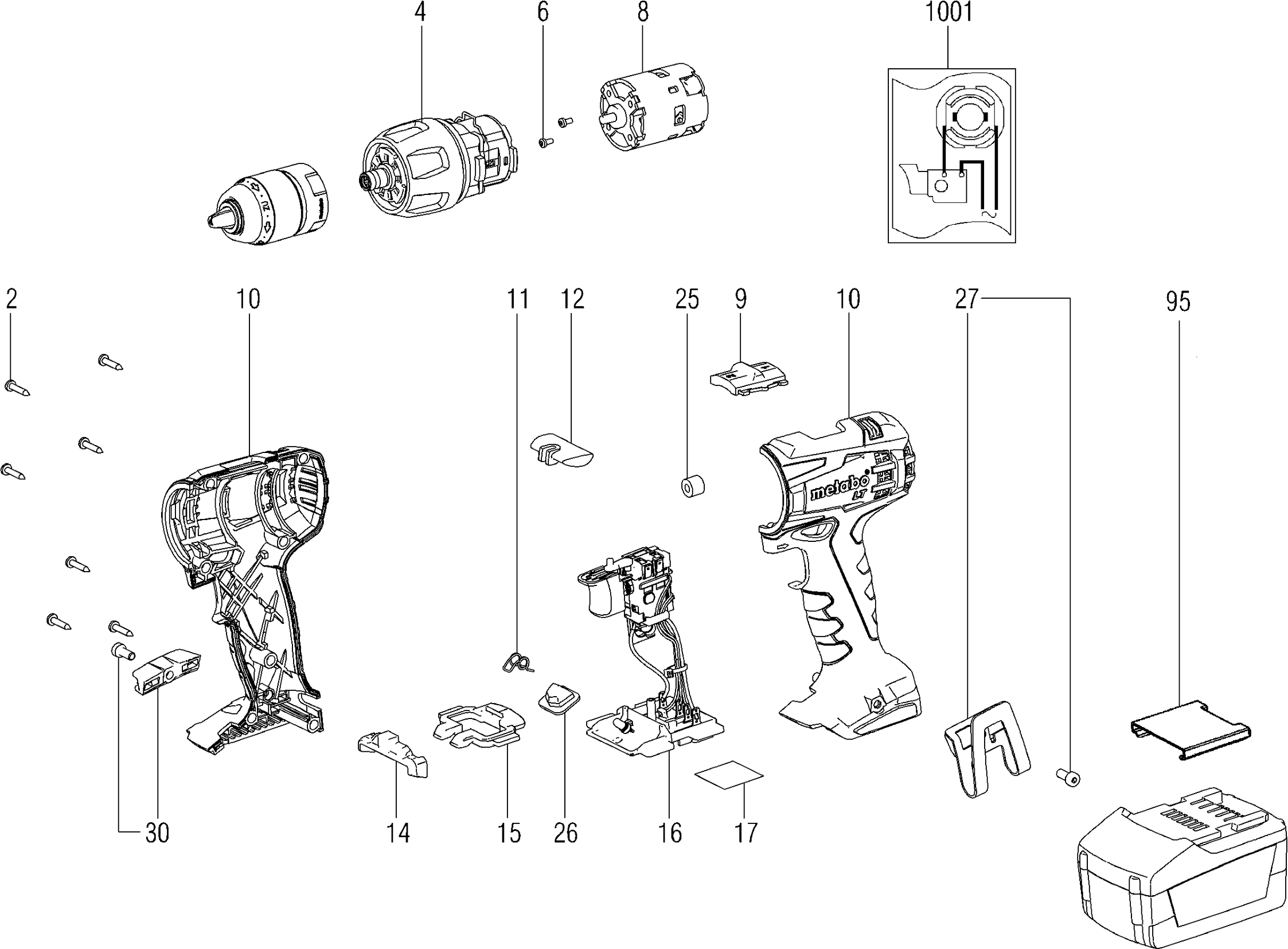 Here you will find all available parts and drawings of the 'Metabo 02104000 ( BS18LTQUICK )'. From here you can order all desired parts directly. Many parts must be ordered from the manufacturer, depending on the brand, this takes one to four weeks. All the information we have is on our website, we cannot advise you on what you need, for that you will need to return the machine for repair. Please note the following when ordering: