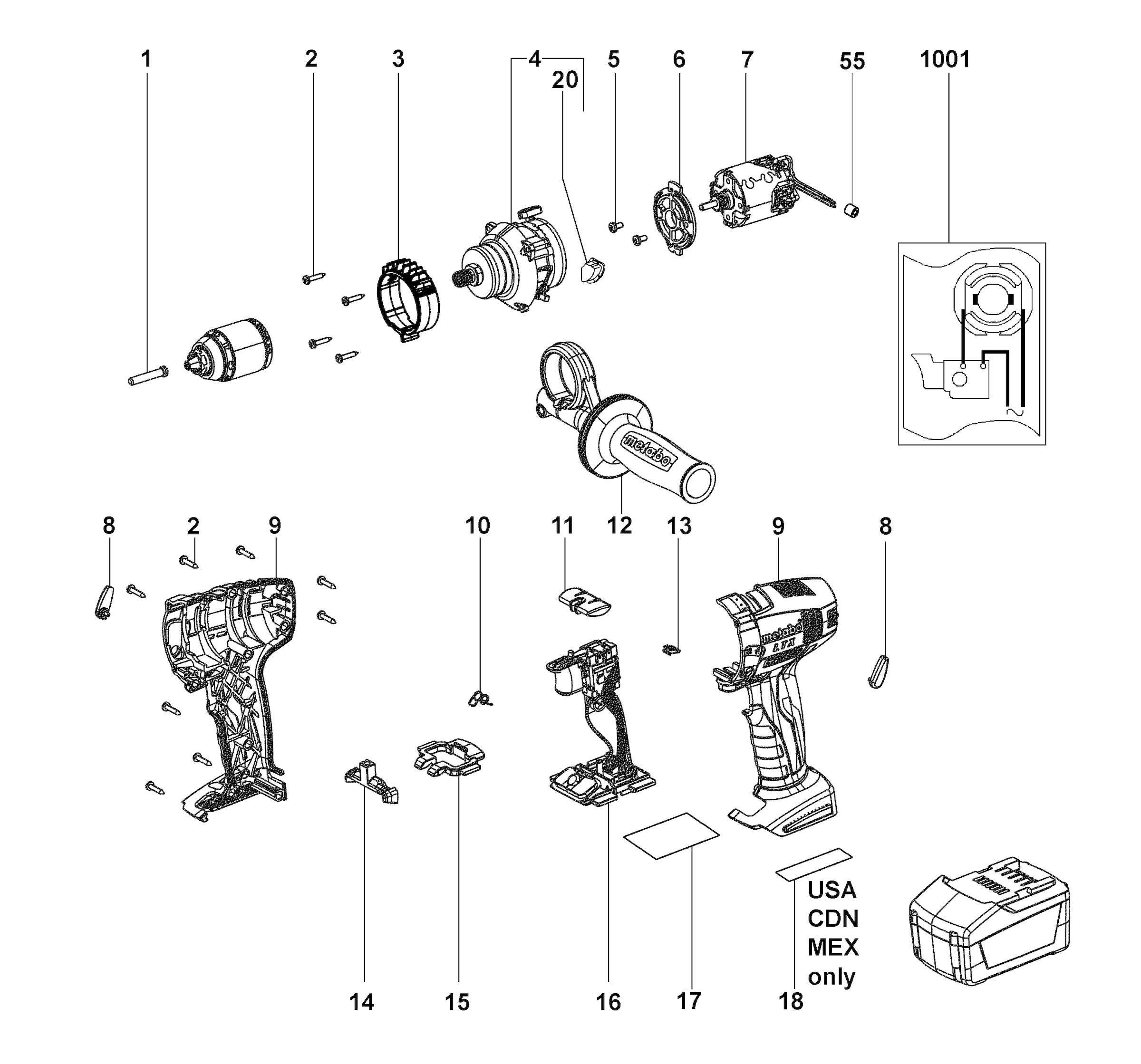 Spare parts list of model Metabo 02144001 ( BS18LTX )