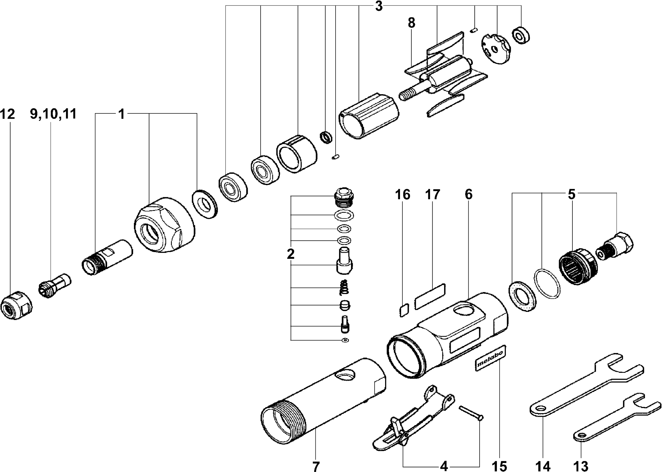 Spare parts list of model Metabo 04116000 ( DG25SET )