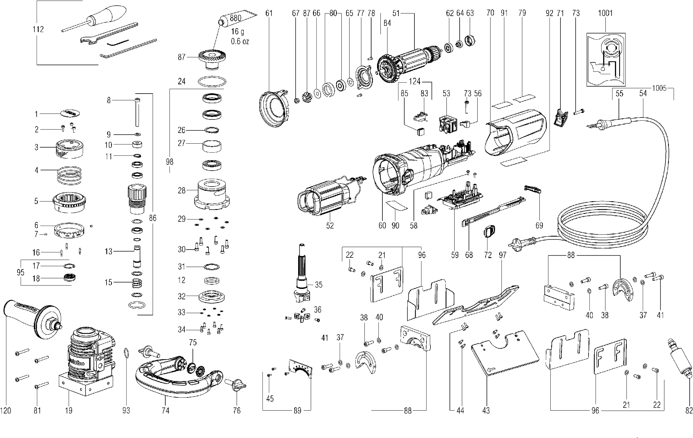 Here you will find all available parts and drawings of the 'Metabo 01752002 ( KFM15-10F )'. From here you can order all desired parts directly. Many parts must be ordered from the manufacturer, depending on the brand, this takes one to four weeks. All the information we have is on our website, we cannot advise you on what you need, for that you will need to return the machine for repair. Please note the following when ordering: