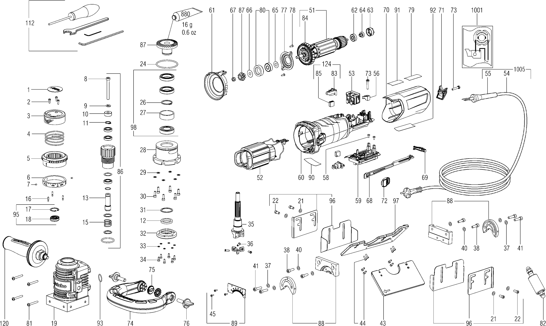 Here you will find all available parts and drawings of the 'Metabo 01752003 ( KFM15-10F )'. From here you can order all desired parts directly. Many parts must be ordered from the manufacturer, depending on the brand, this takes one to four weeks. All the information we have is on our website, we cannot advise you on what you need, for that you will need to return the machine for repair. Please note the following when ordering: