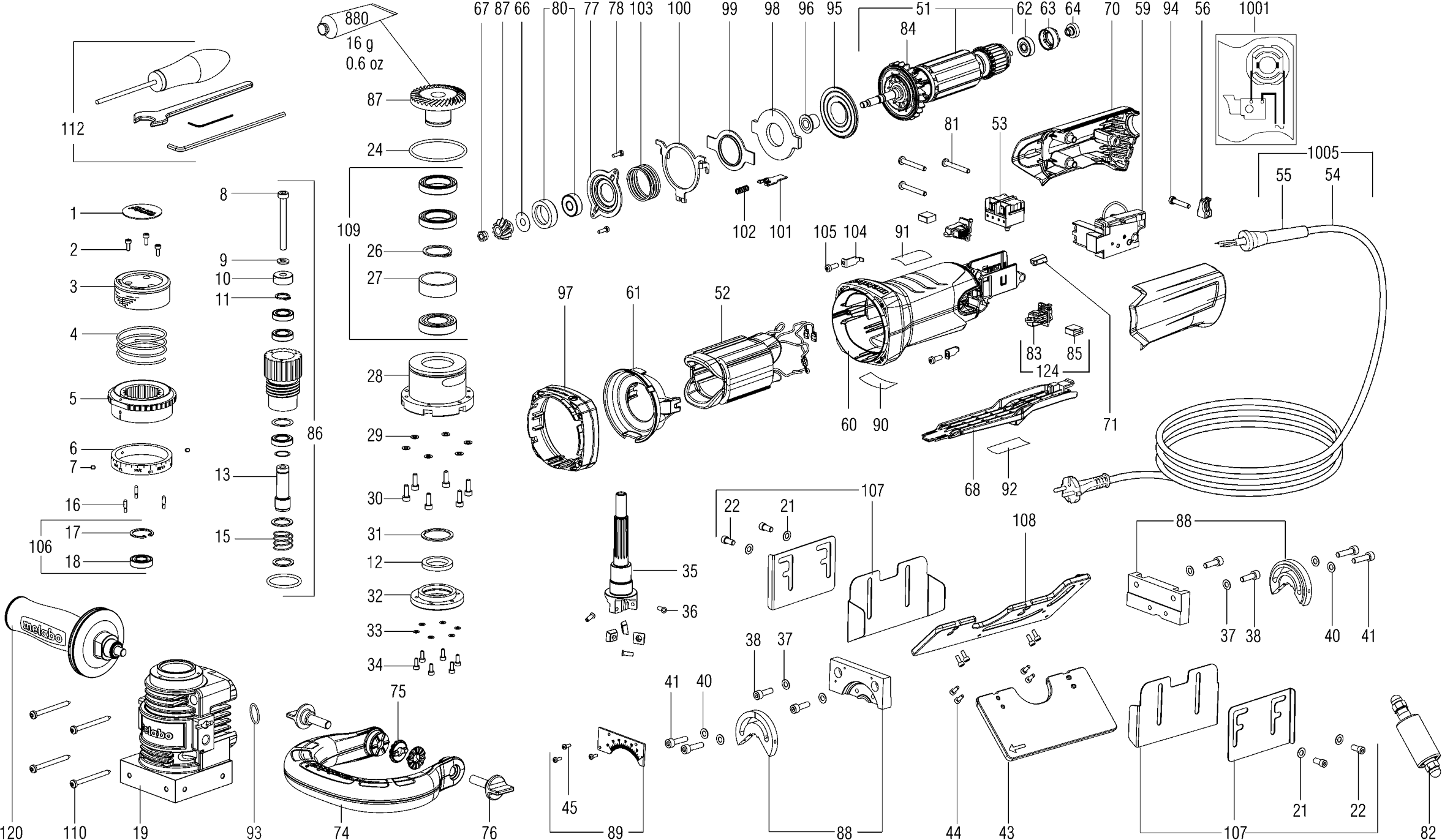Here you will find all available parts and drawings of the 'Metabo 01755002 ( KFMPB15-10F )'. From here you can order all desired parts directly. Many parts must be ordered from the manufacturer, depending on the brand, this takes one to four weeks. All the information we have is on our website, we cannot advise you on what you need, for that you will need to return the machine for repair. Please note the following when ordering: