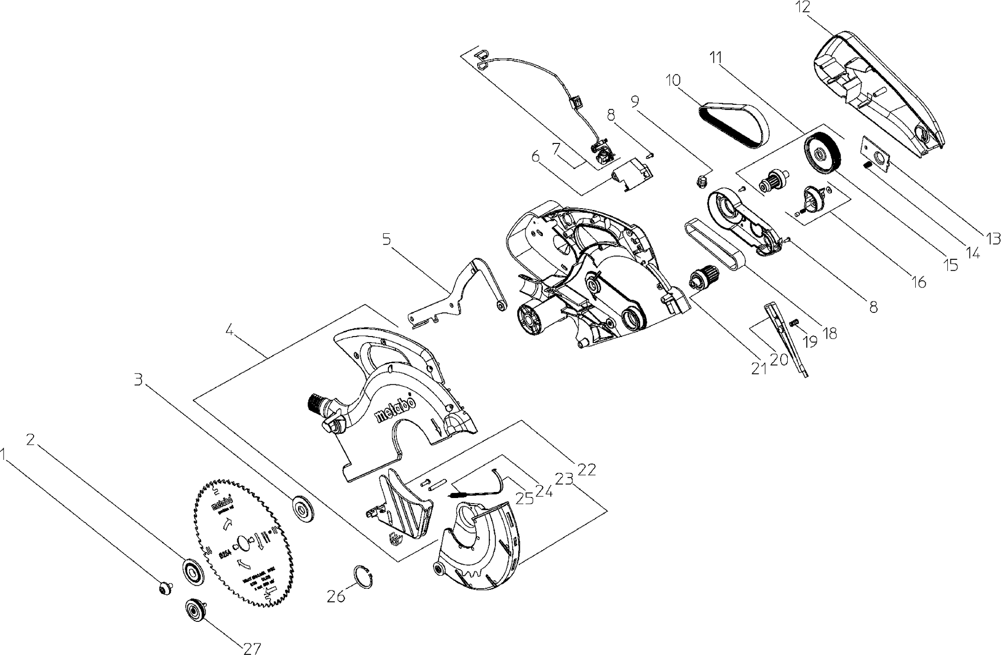 Here you will find all available parts and drawings of the 'Metabo 0102160200-10 ( KGS216PLUS )'. From here you can order all desired parts directly. Many parts must be ordered from the manufacturer, depending on the brand, this takes one to four weeks. All the information we have is on our website, we cannot advise you on what you need, for that you will need to return the machine for repair. Please note the following when ordering: