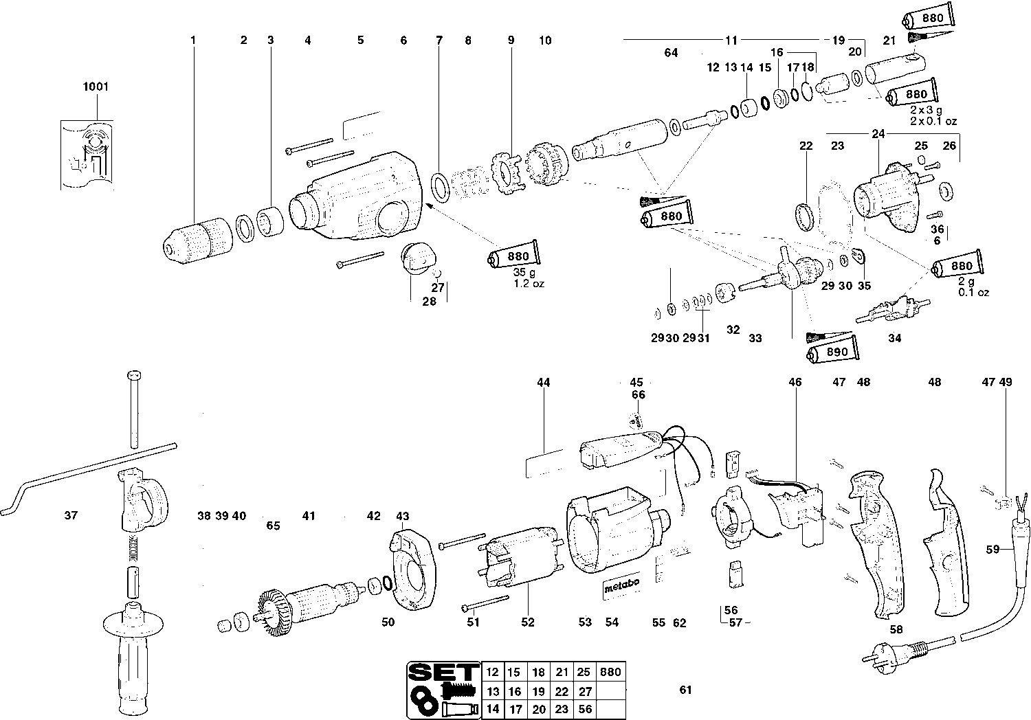 Here you will find all available parts and drawings of the 'Metabo 00247000 ( KHE26DIAGNOSTIC )'. From here you can order all desired parts directly. Many parts must be ordered from the manufacturer, depending on the brand, this takes one to four weeks. All the information we have is on our website, we cannot advise you on what you need, for that you will need to return the machine for repair. Please note the following when ordering: