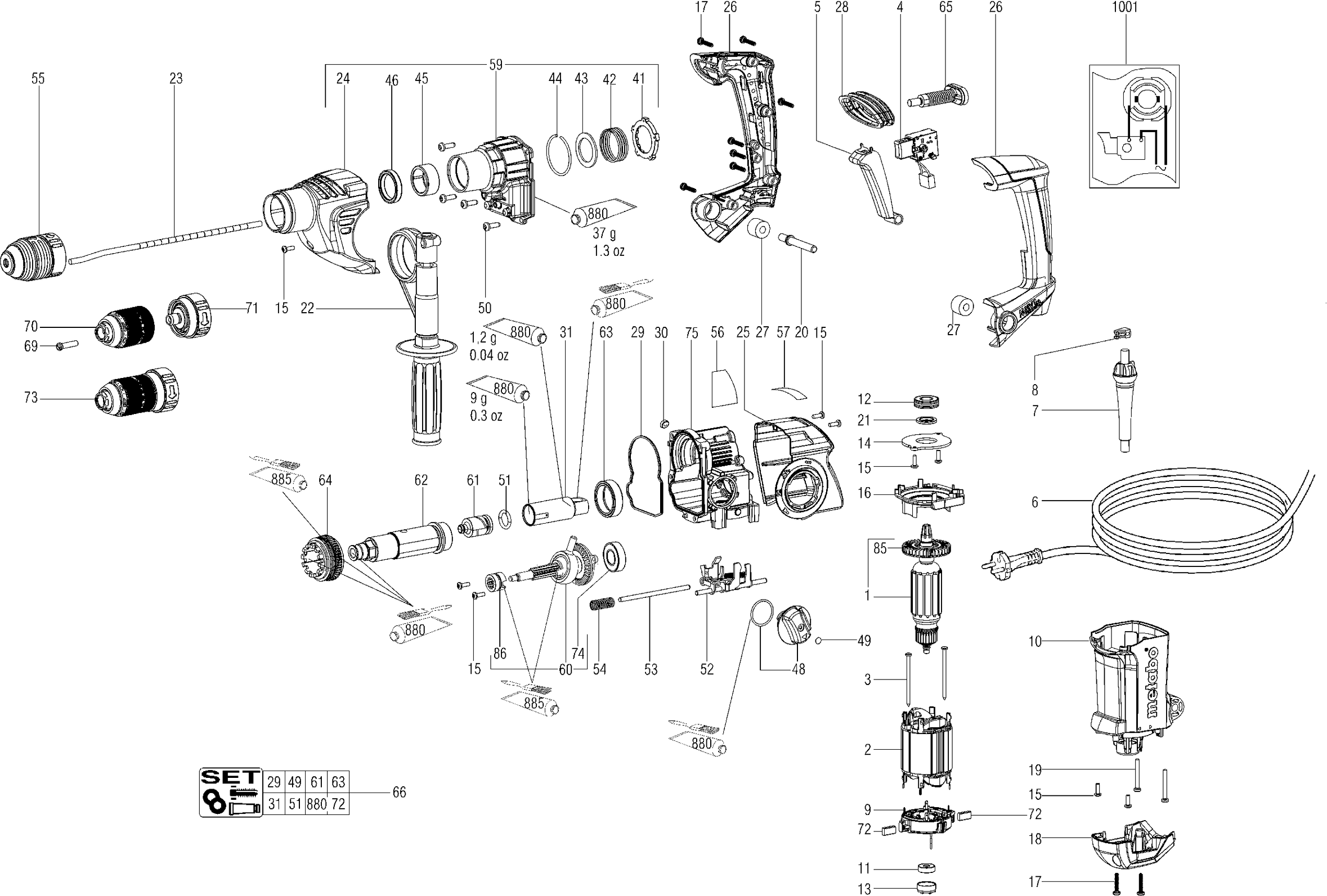 Technical drawing of model Metabo 00659000 ( KHE3251 )