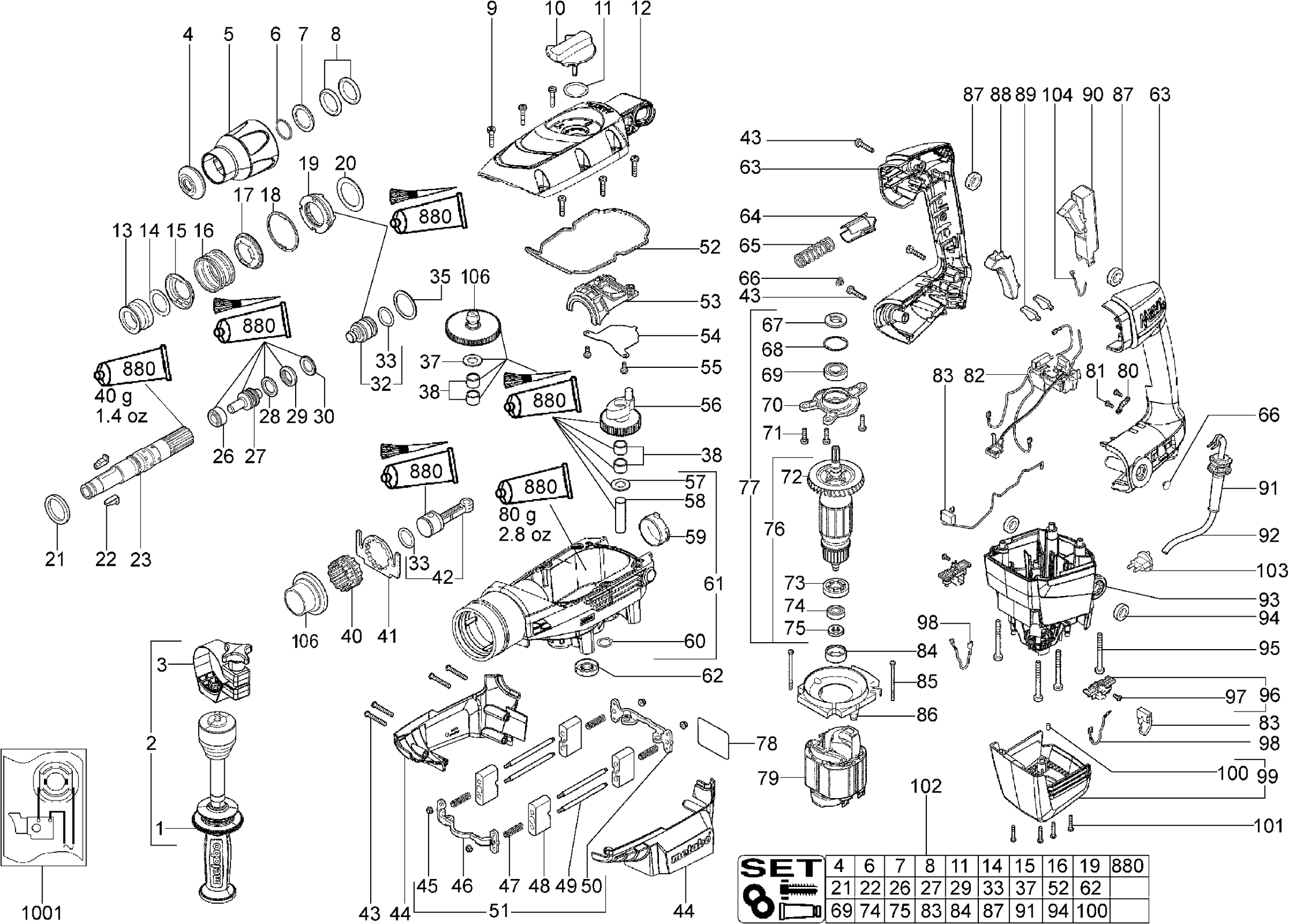 Spare parts list of model Metabo 00341001 ( KHE76 )