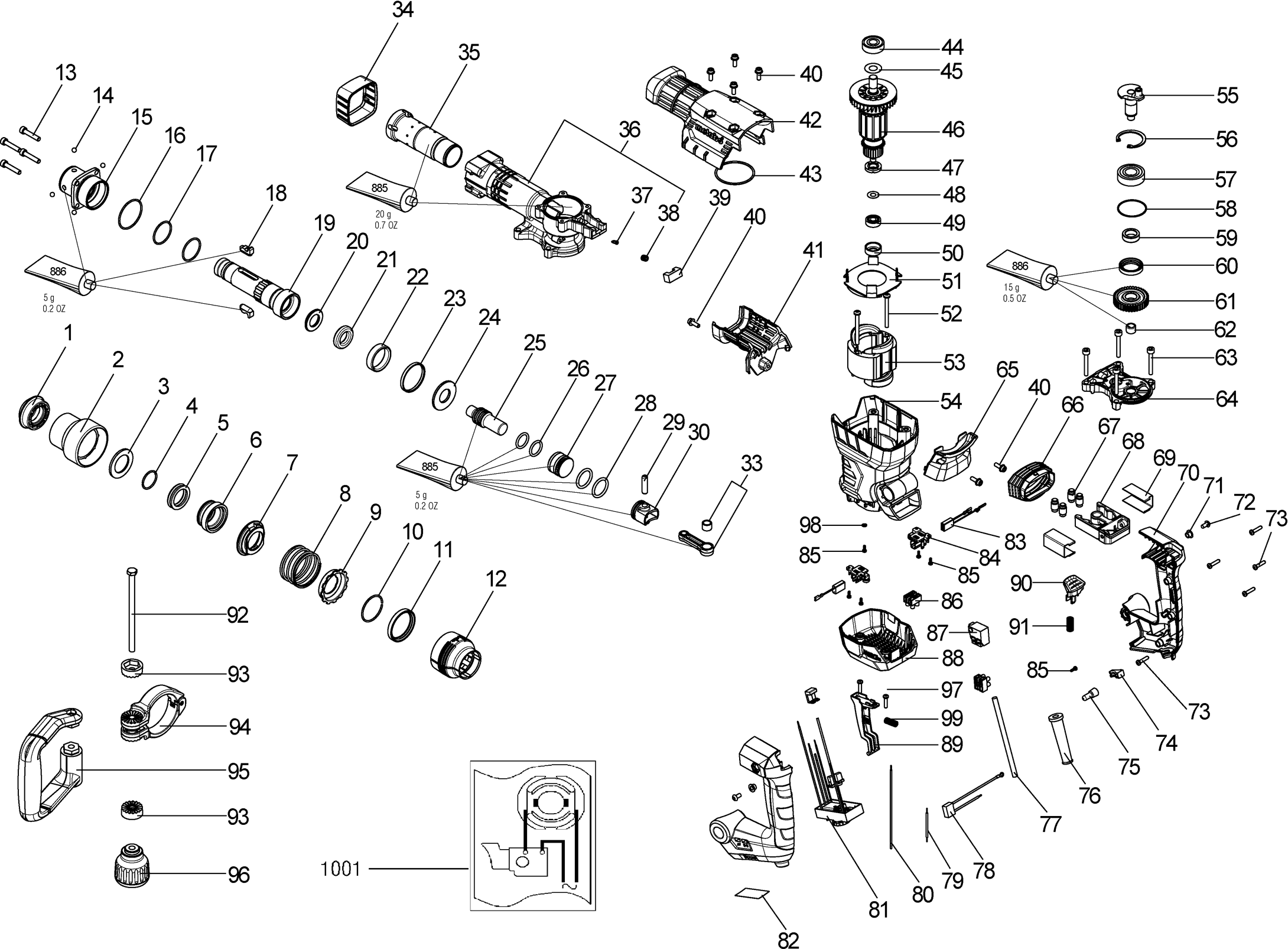 Here you will find all available parts and drawings of the 'Metabo 00148000 ( MHE5 )'. From here you can order all desired parts directly. Many parts must be ordered from the manufacturer, depending on the brand, this takes one to four weeks. All the information we have is on our website, we cannot advise you on what you need, for that you will need to return the machine for repair. Please note the following when ordering: