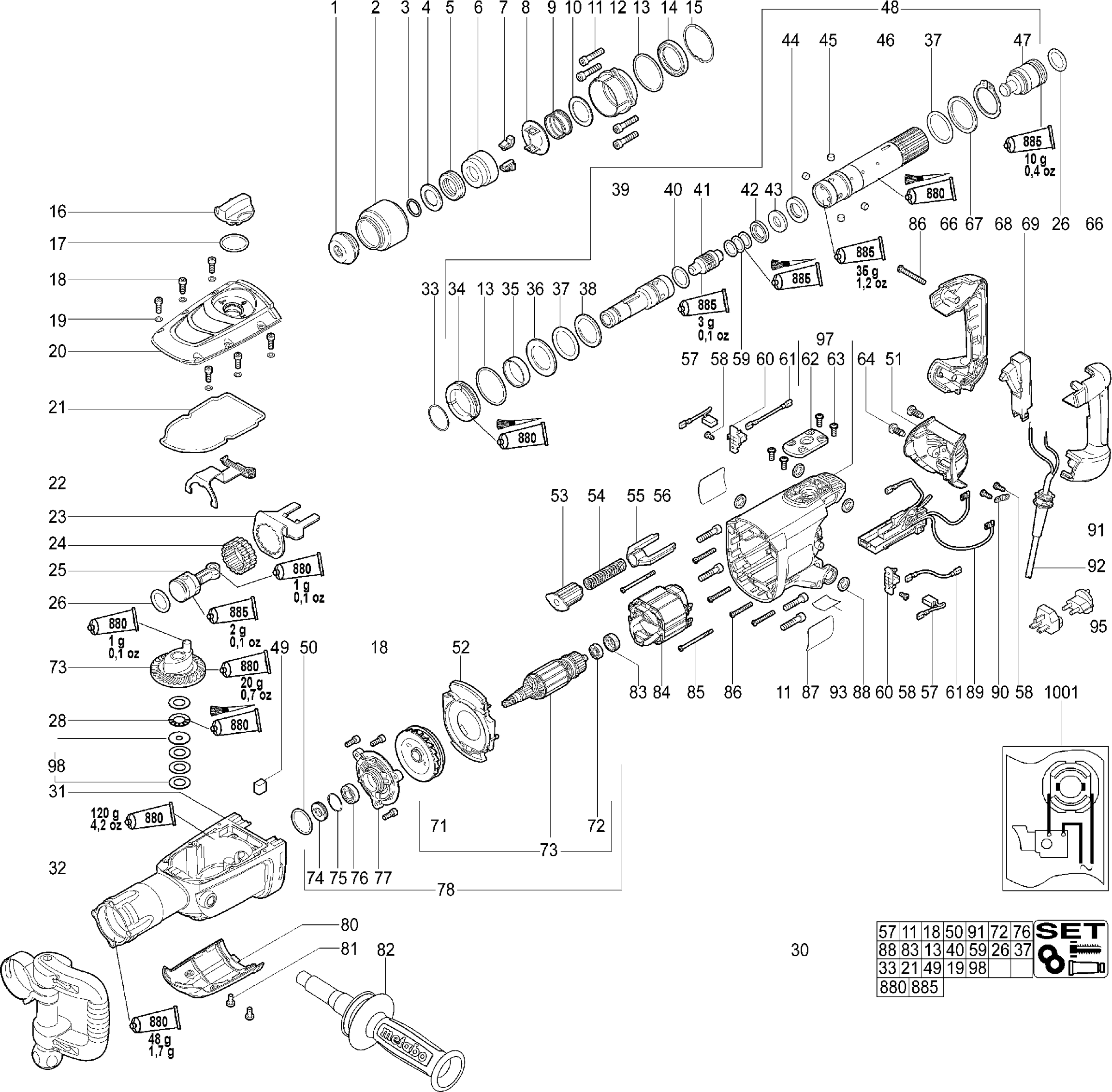 Here you will find all available parts and drawings of the 'Metabo 00396000 ( MHE96 )'. From here you can order all desired parts directly. Many parts must be ordered from the manufacturer, depending on the brand, this takes one to four weeks. All the information we have is on our website, we cannot advise you on what you need, for that you will need to return the machine for repair. Please note the following when ordering: