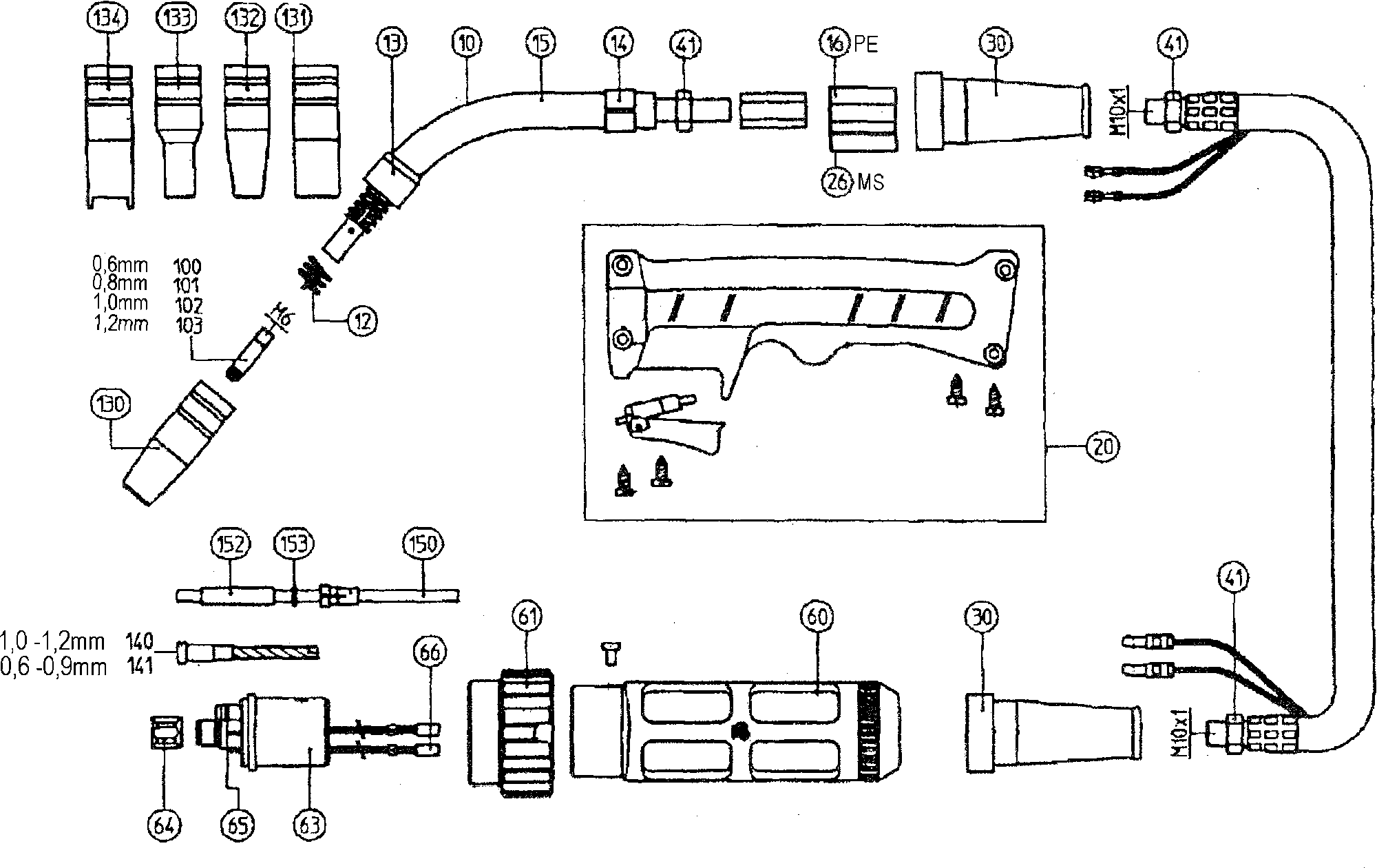 Technical drawing of model Metabo 0902009949-10 ( MIG-MAGWELDINGTORCHSB15-3KZ2 )