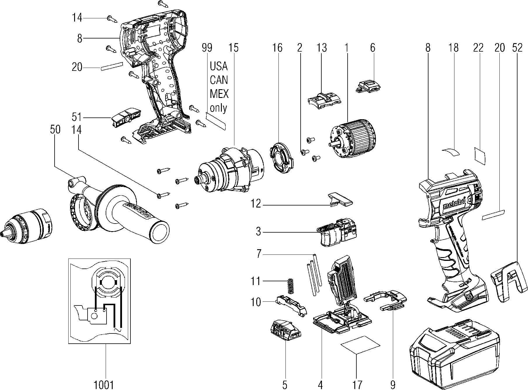 Spare parts list of model Metabo 02199000 ( SB18LTXBLQUICK )