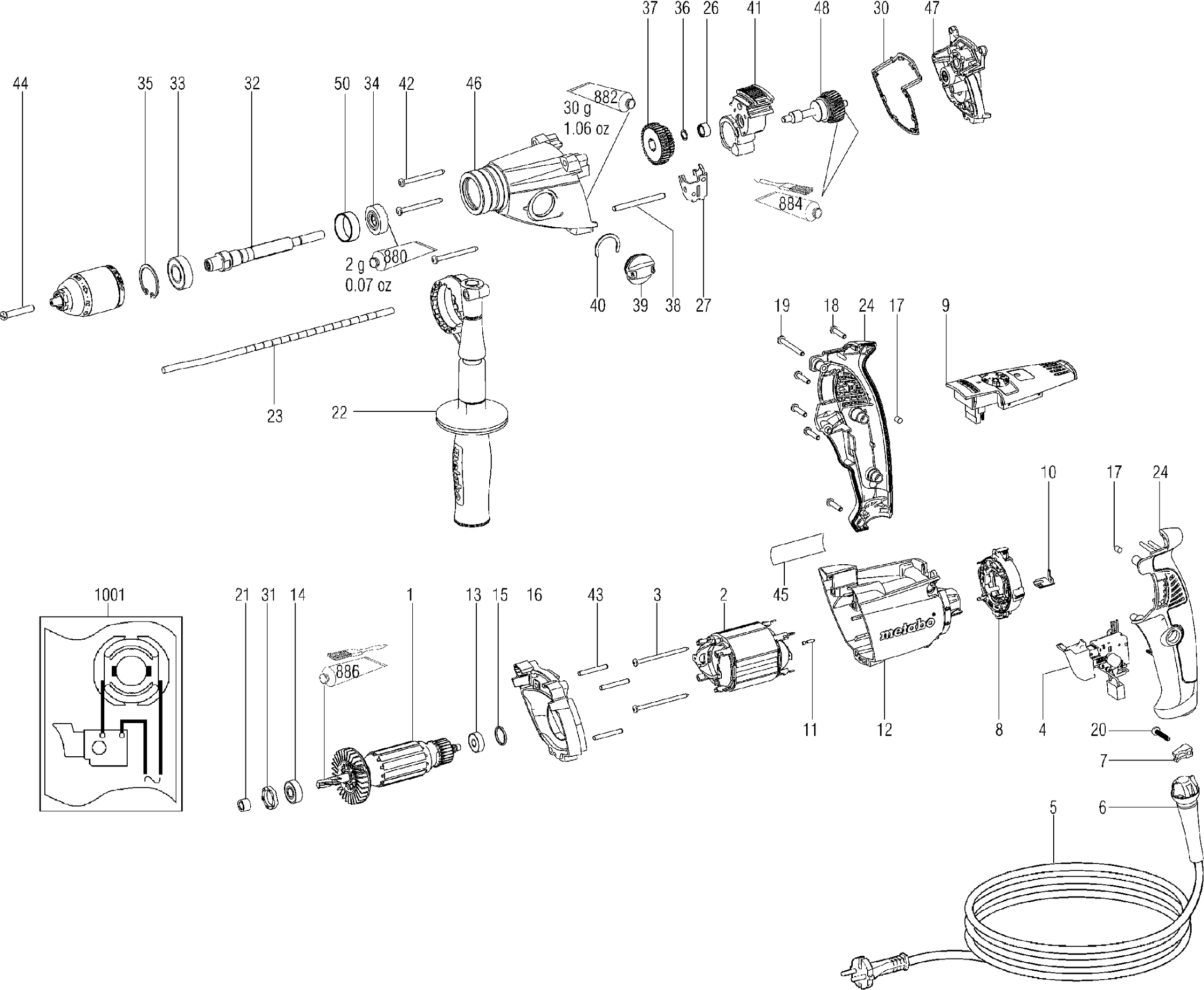Spare parts list of model Metabo 00843000 ( SBE1300 )