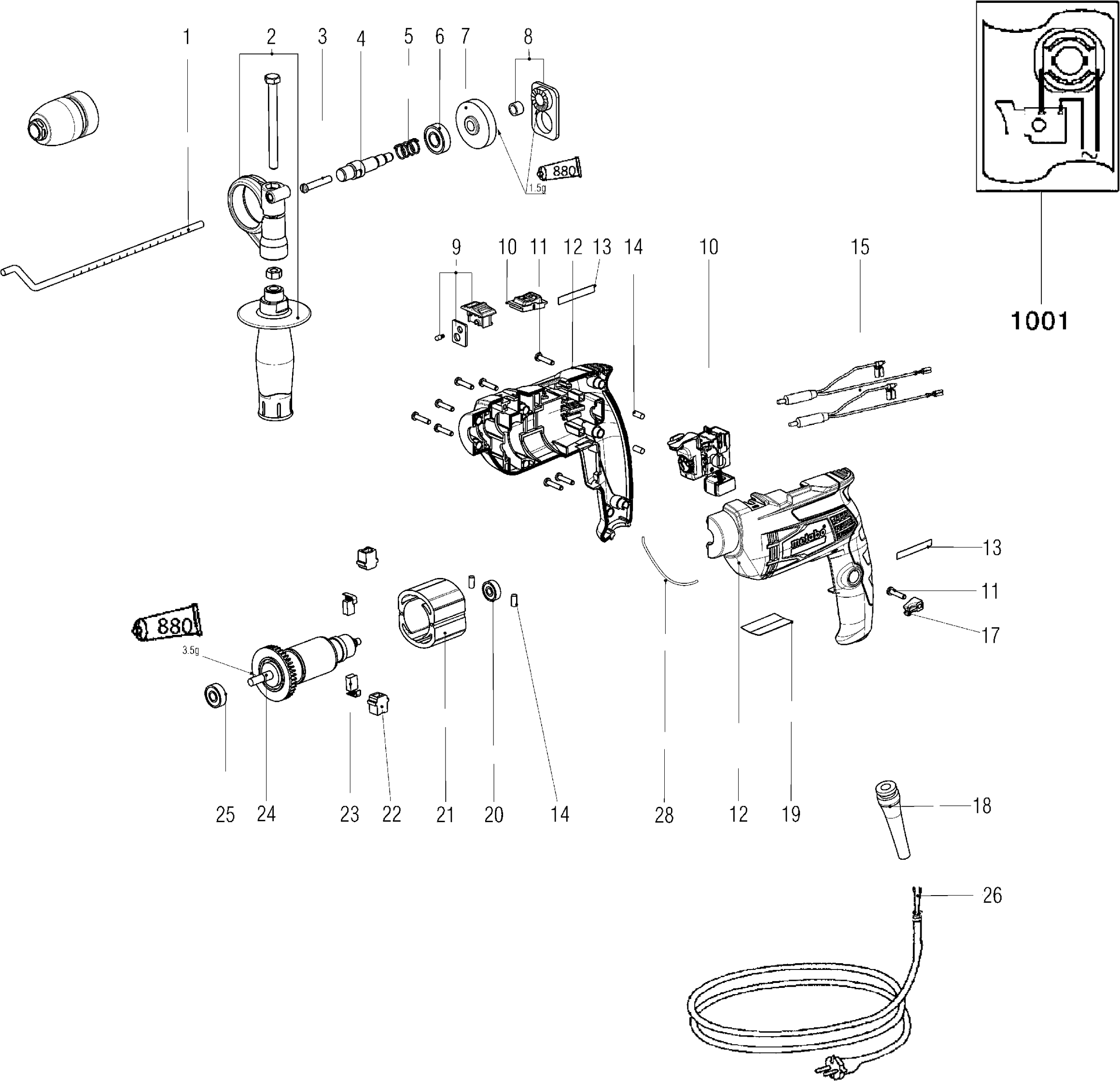 Here you will find all available parts and drawings of the 'Metabo 00672000 ( SBE650IMPULS )'. From here you can order all desired parts directly. Many parts must be ordered from the manufacturer, depending on the brand, this takes one to four weeks. All the information we have is on our website, we cannot advise you on what you need, for that you will need to return the machine for repair. Please note the following when ordering: