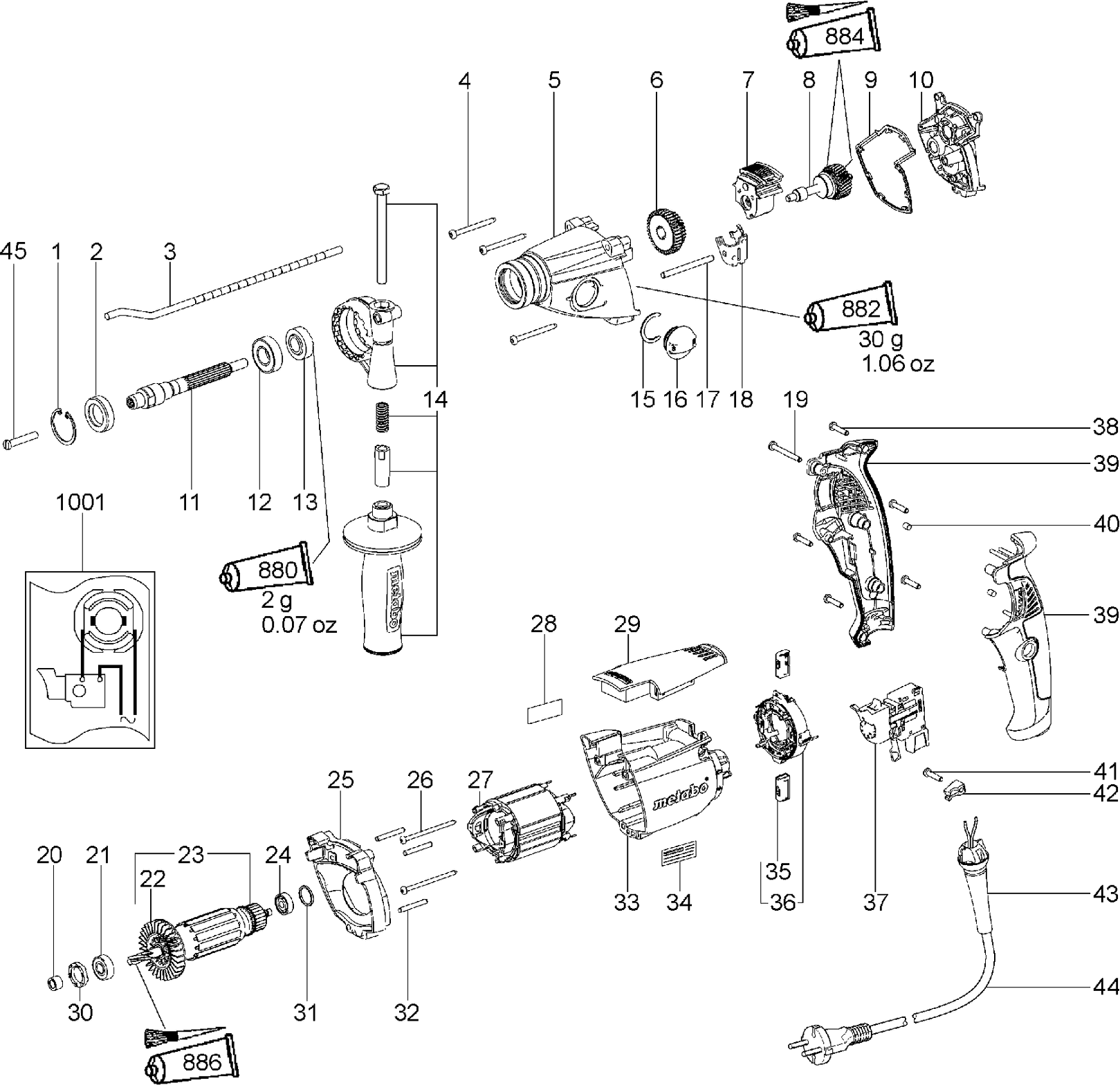 Here you will find all available parts and drawings of the 'Metabo 00863000 ( SBE751 )'. From here you can order all desired parts directly. Many parts must be ordered from the manufacturer, depending on the brand, this takes one to four weeks. All the information we have is on our website, we cannot advise you on what you need, for that you will need to return the machine for repair. Please note the following when ordering: