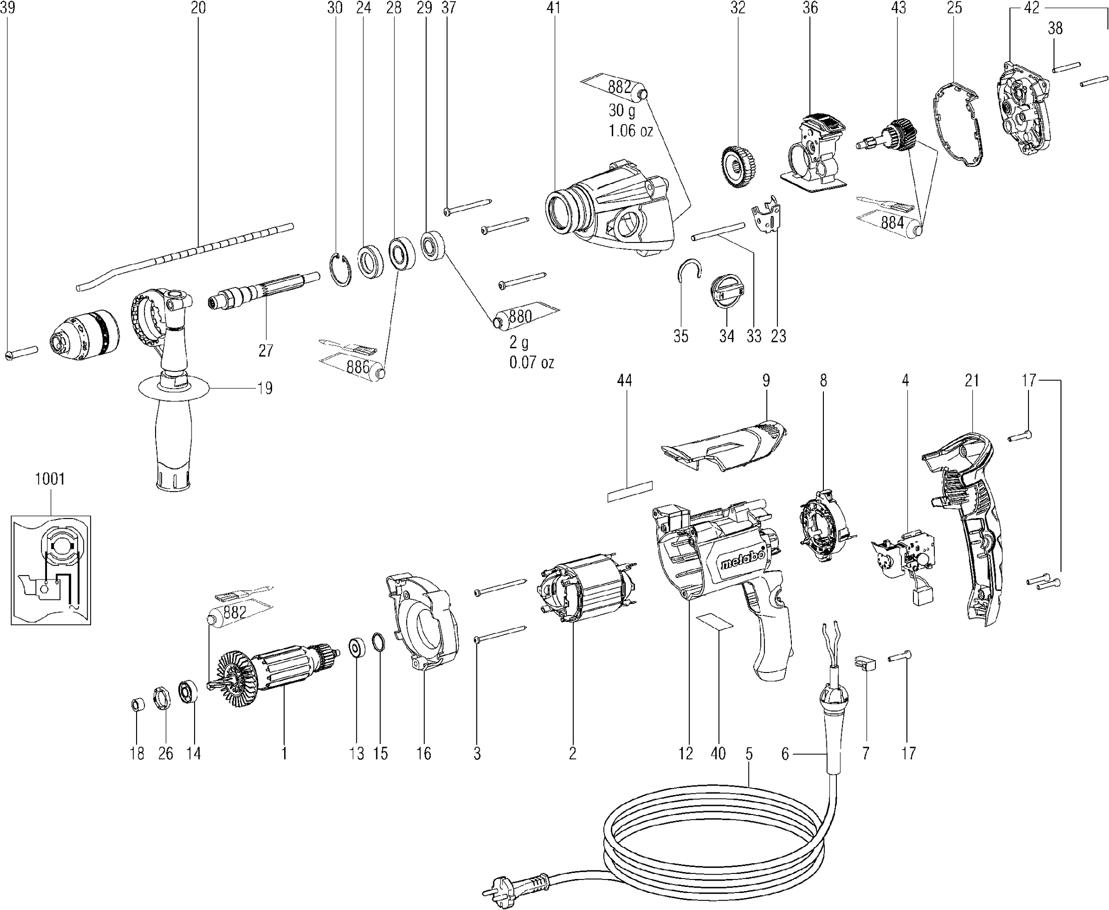 Here you will find all available parts and drawings of the 'Metabo 00781000 ( SBE780-2 )'. From here you can order all desired parts directly. Many parts must be ordered from the manufacturer, depending on the brand, this takes one to four weeks. All the information we have is on our website, we cannot advise you on what you need, for that you will need to return the machine for repair. Please note the following when ordering: