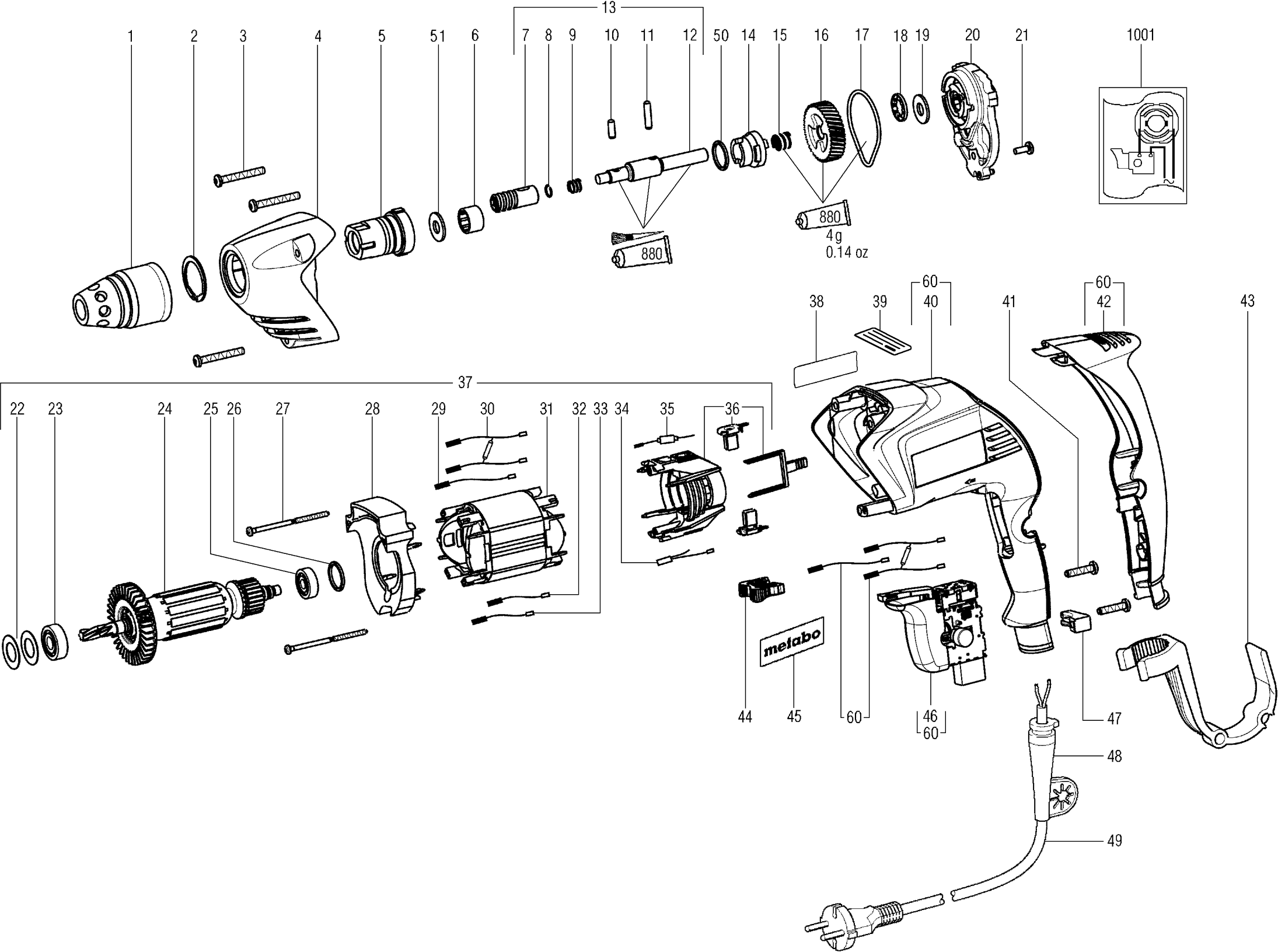 Spare parts list of model Metabo 20003000 ( SE2800 )