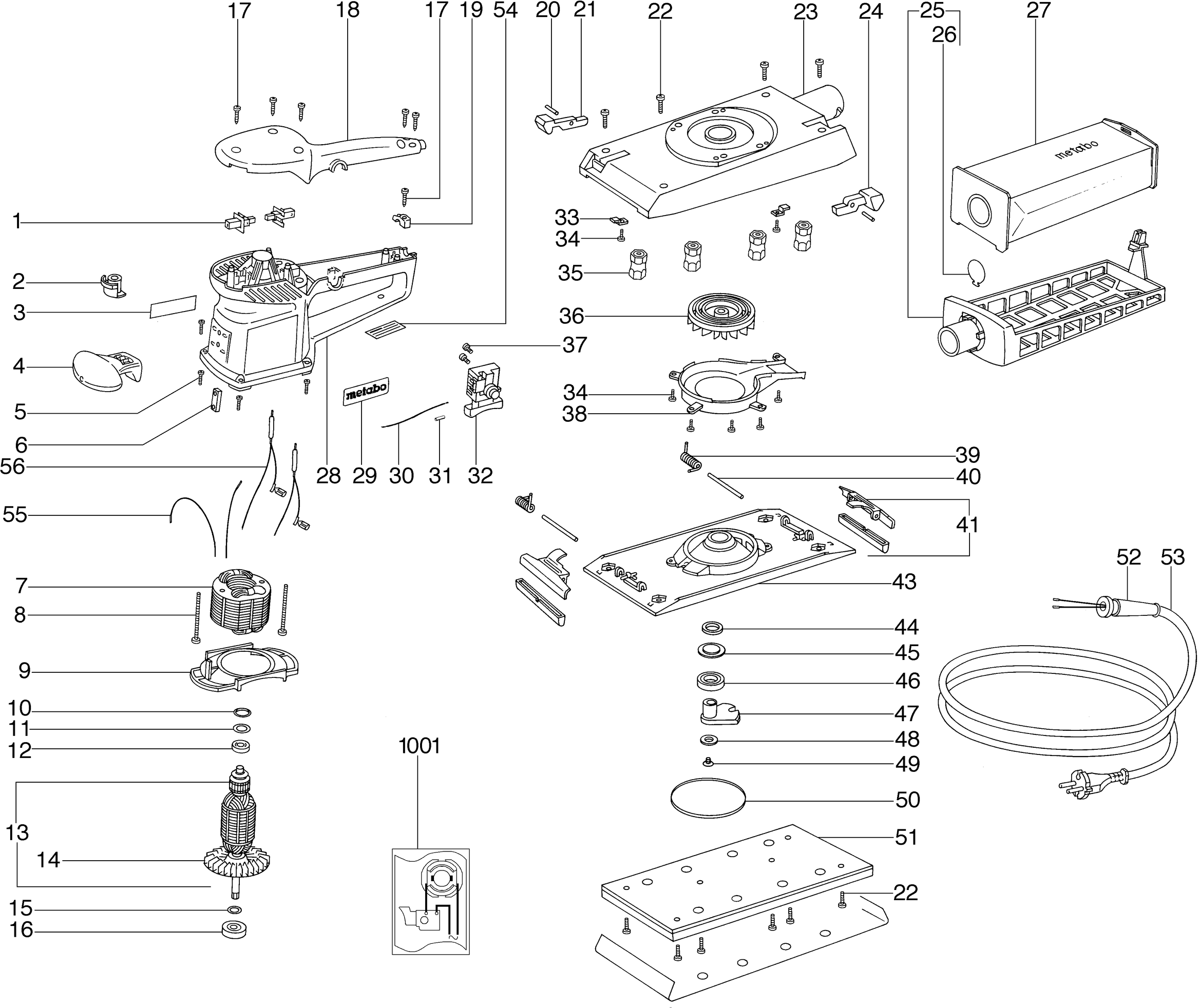 Here you will find all available parts and drawings of the 'Metabo 00358001 ( SR358 )'. From here you can order all desired parts directly. Many parts must be ordered from the manufacturer, depending on the brand, this takes one to four weeks. All the information we have is on our website, we cannot advise you on what you need, for that you will need to return the machine for repair. Please note the following when ordering: