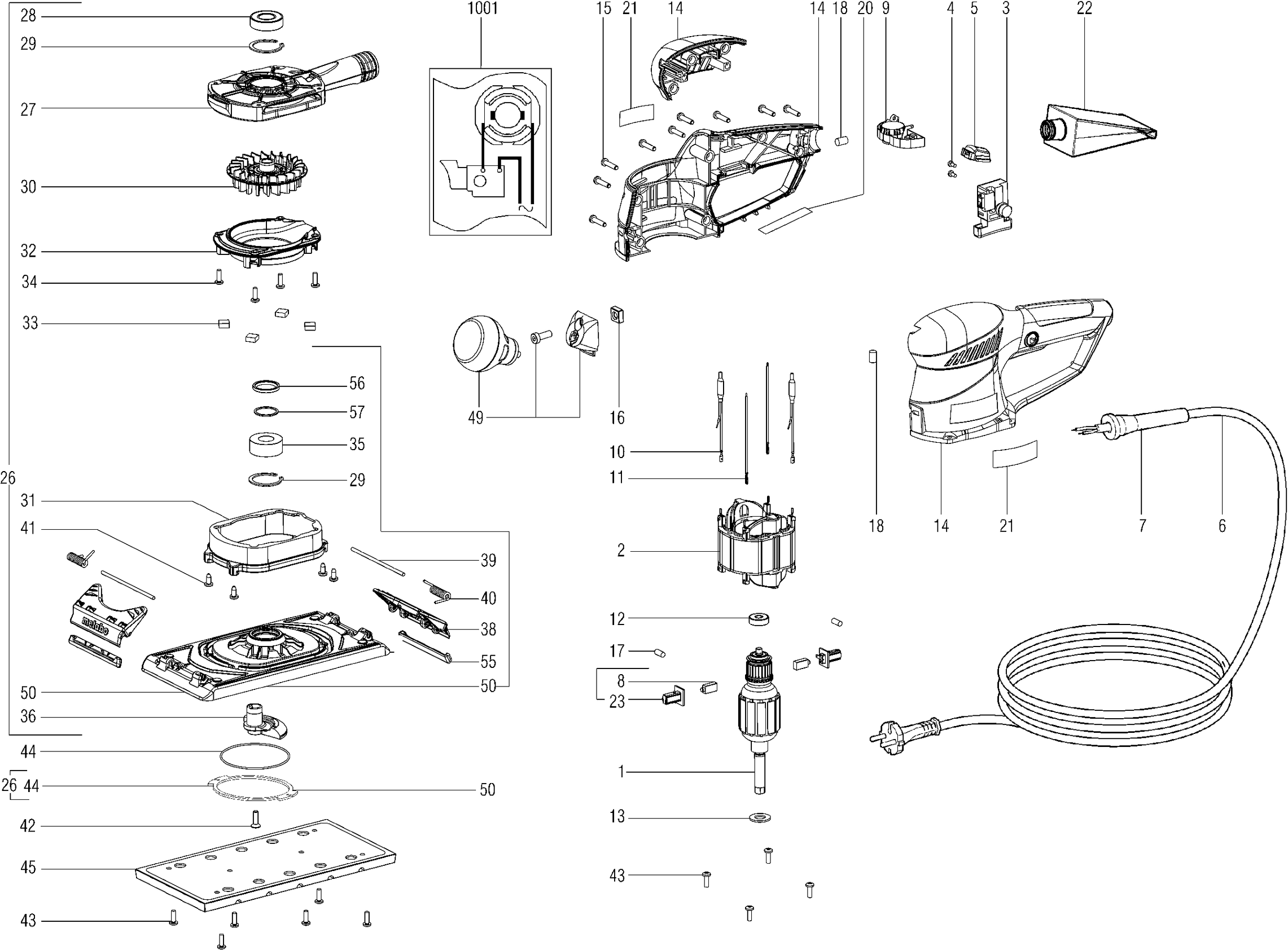 Here you will find all available parts and drawings of the 'Metabo 11350000 ( SRE4350TURBOTEC )'. From here you can order all desired parts directly. Many parts must be ordered from the manufacturer, depending on the brand, this takes one to four weeks. All the information we have is on our website, we cannot advise you on what you need, for that you will need to return the machine for repair. Please note the following when ordering:
