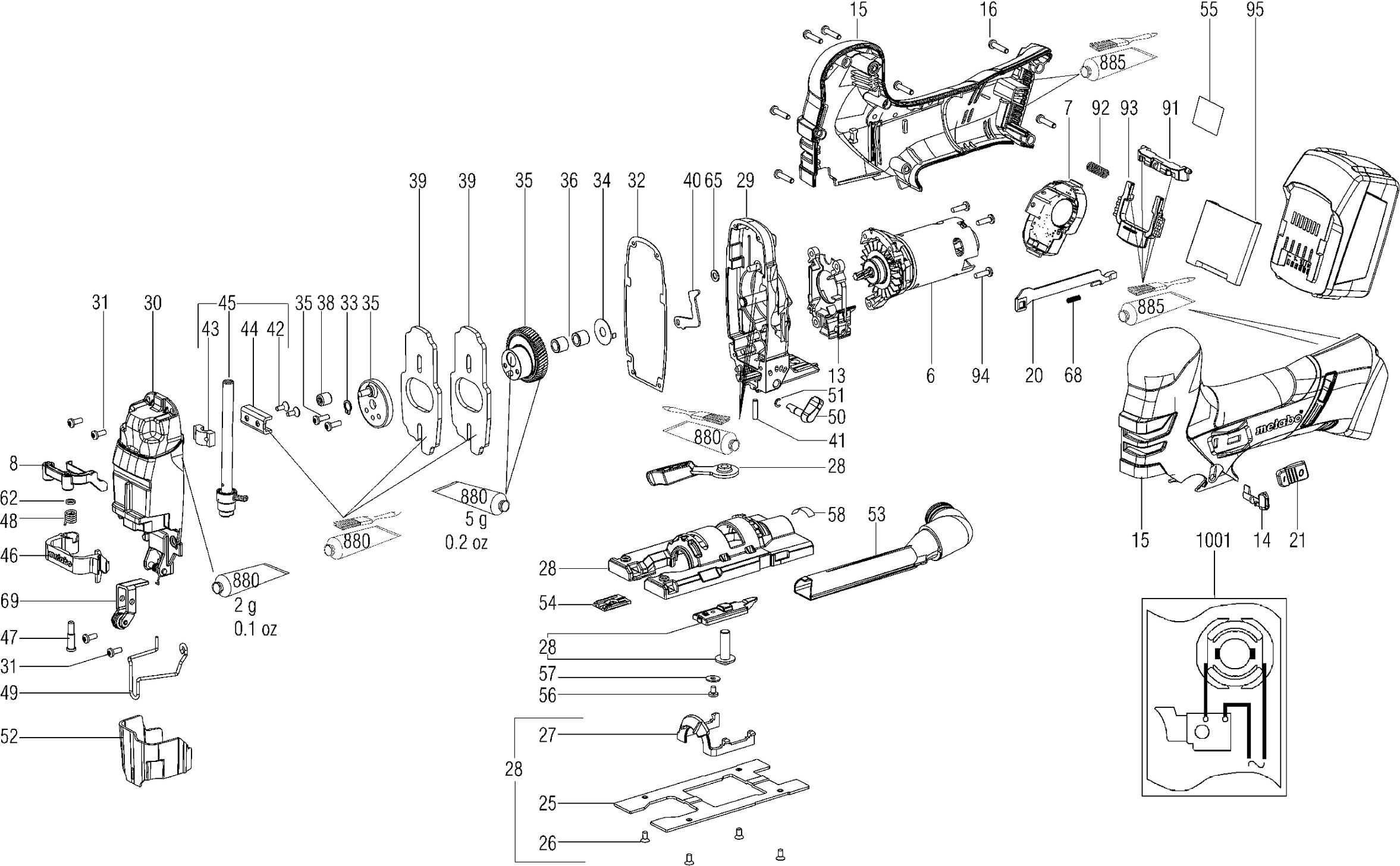 Technical drawing of model Metabo 01405000 ( STA18LTX140 )