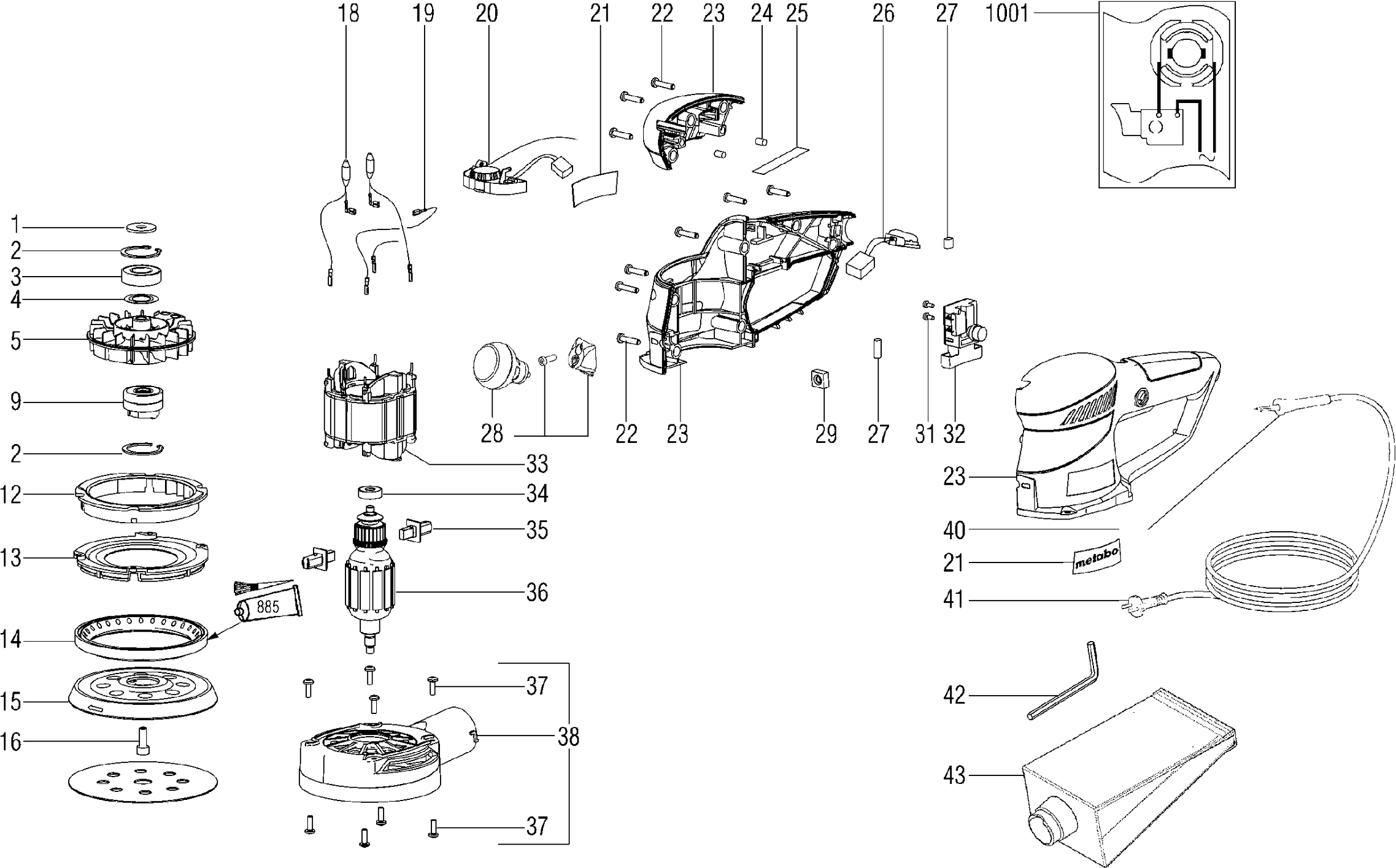 Here you will find all available parts and drawings of the 'Metabo 00131000 ( SXE425TURBOTEC )'. From here you can order all desired parts directly. Many parts must be ordered from the manufacturer, depending on the brand, this takes one to four weeks. All the information we have is on our website, we cannot advise you on what you need, for that you will need to return the machine for repair. Please note the following when ordering: