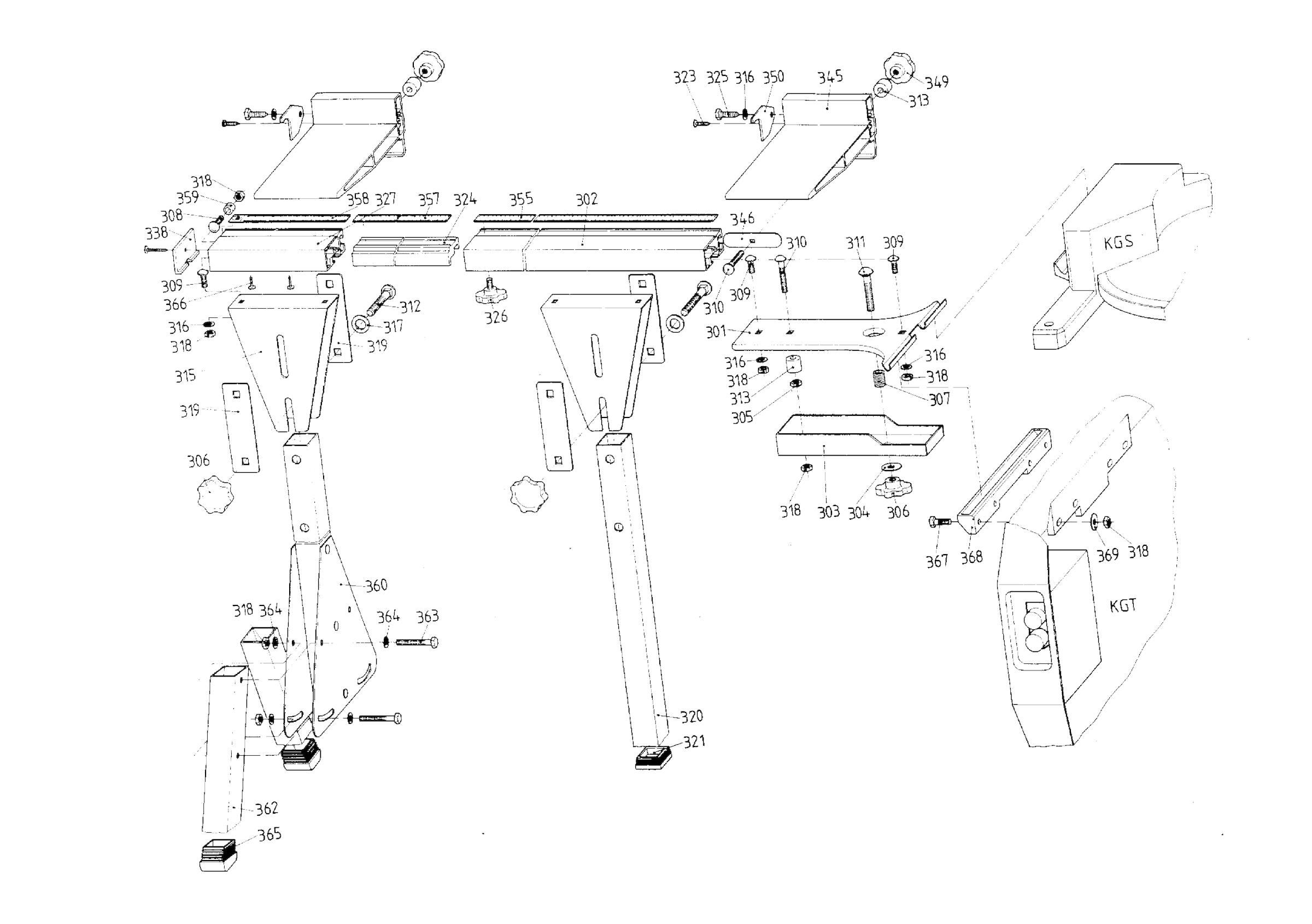 Technical drawing of model Metabo 0910003500-10 ( TAFELVERLENGINGKGSLINKSTELESKOPVERL. )