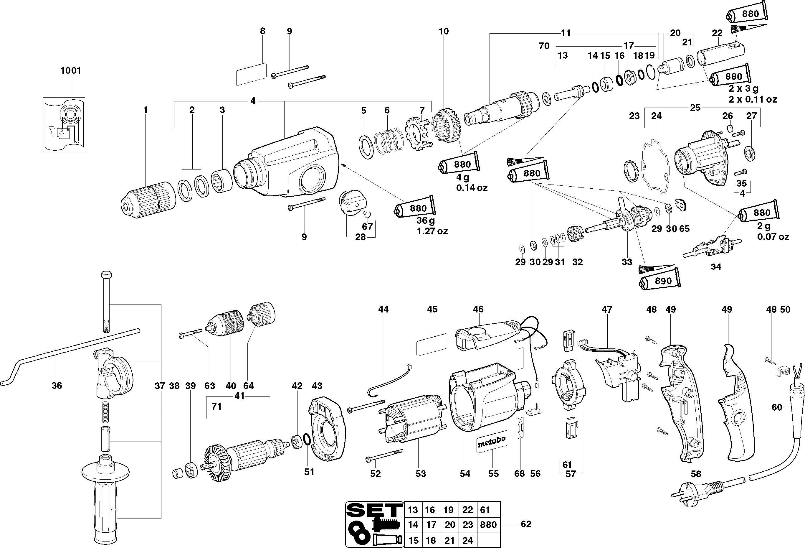 Spare parts list of model Metabo 00961000 ( UHE28MULTI )