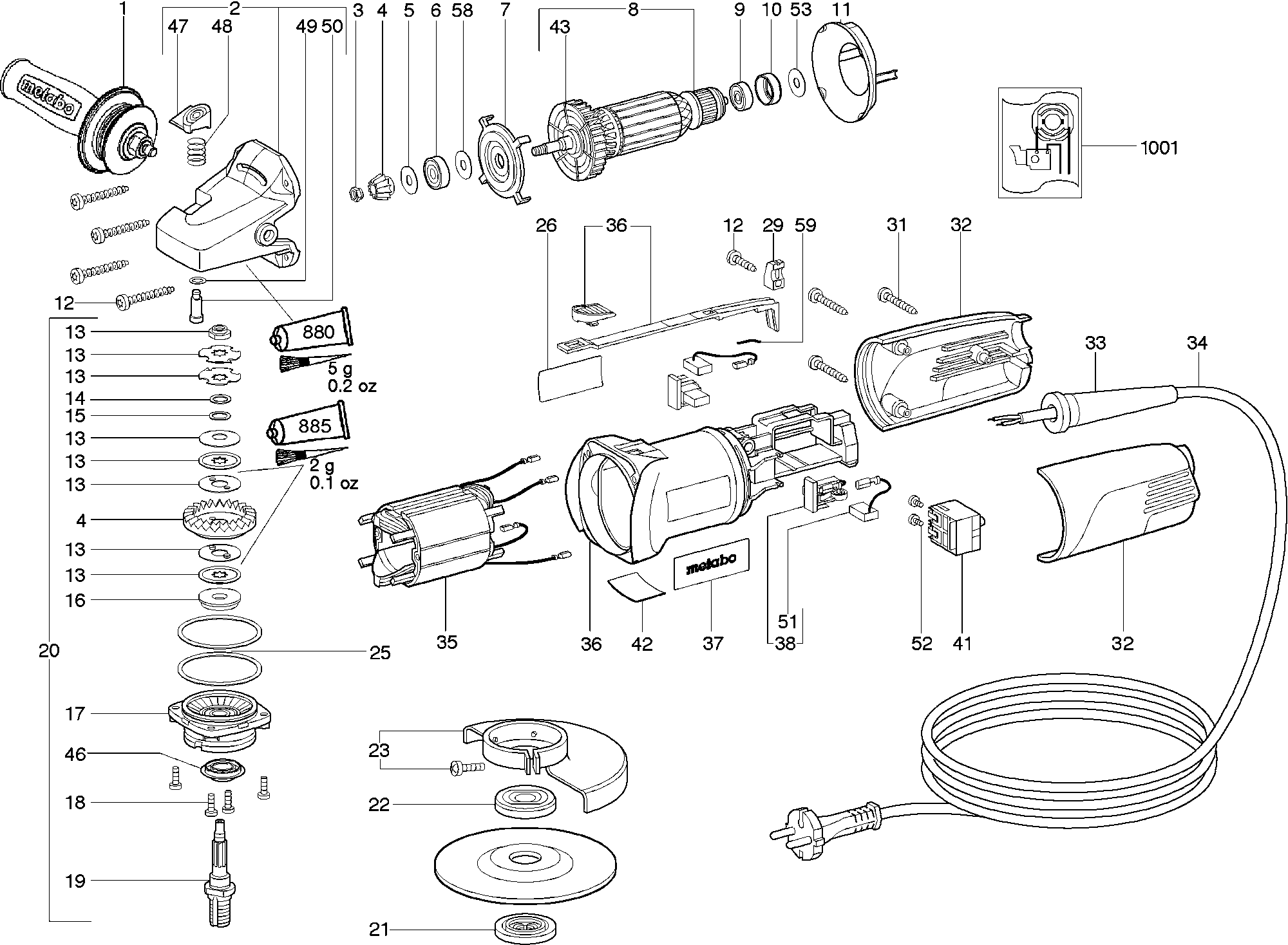Here you will find all available parts and drawings of the 'Metabo 01051001 ( W10-150QUICK )'. From here you can order all desired parts directly. Many parts must be ordered from the manufacturer, depending on the brand, this takes one to four weeks. All the information we have is on our website, we cannot advise you on what you need, for that you will need to return the machine for repair. Please note the following when ordering: