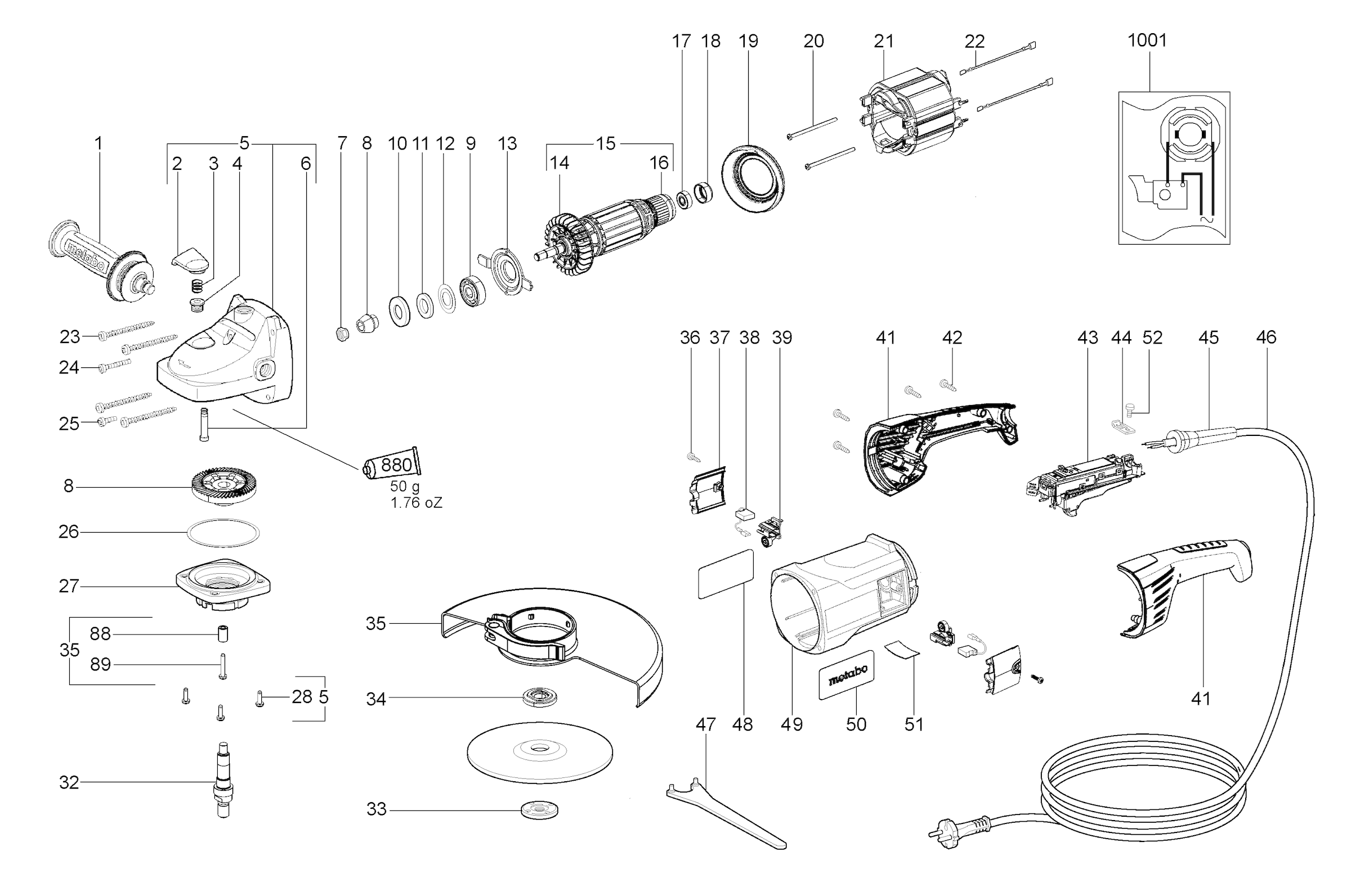 Here you will find all available parts and drawings of the 'Metabo 06440000 ( W21-180 )'. From here you can order all desired parts directly. Many parts must be ordered from the manufacturer, depending on the brand, this takes one to four weeks. All the information we have is on our website, we cannot advise you on what you need, for that you will need to return the machine for repair. Please note the following when ordering:
