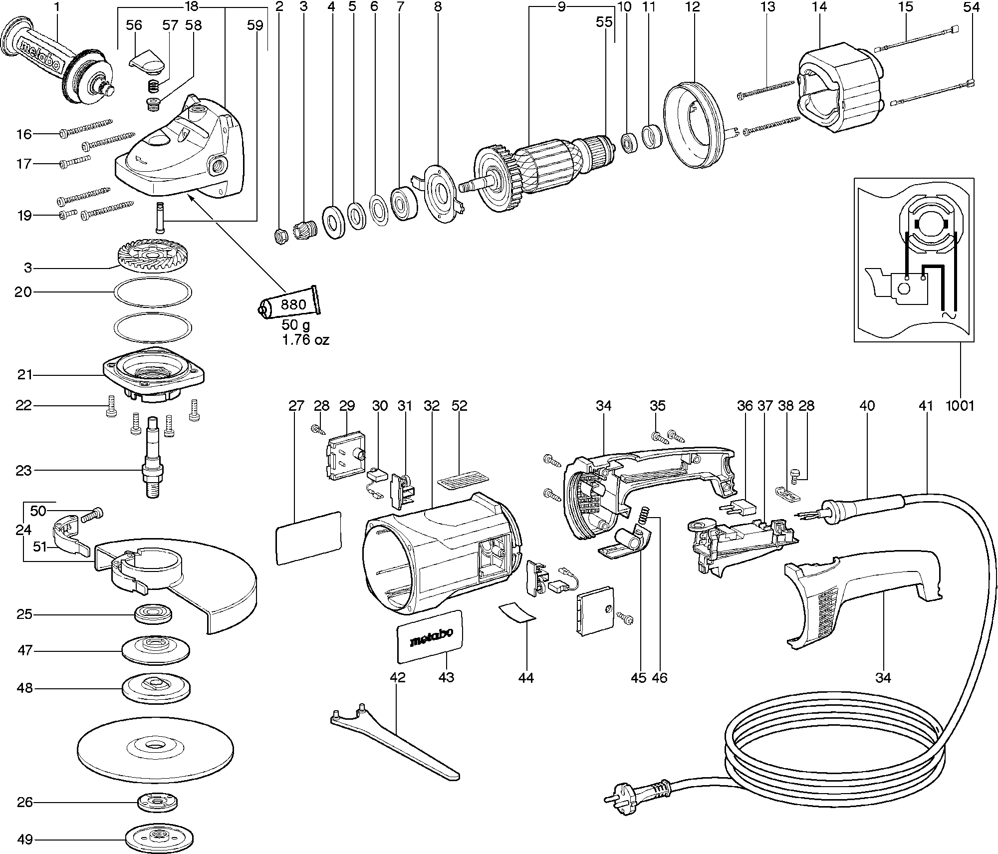 Here you will find all available parts and drawings of the 'Metabo 06410260 ( W23-180 )'. From here you can order all desired parts directly. Many parts must be ordered from the manufacturer, depending on the brand, this takes one to four weeks. All the information we have is on our website, we cannot advise you on what you need, for that you will need to return the machine for repair. Please note the following when ordering:
