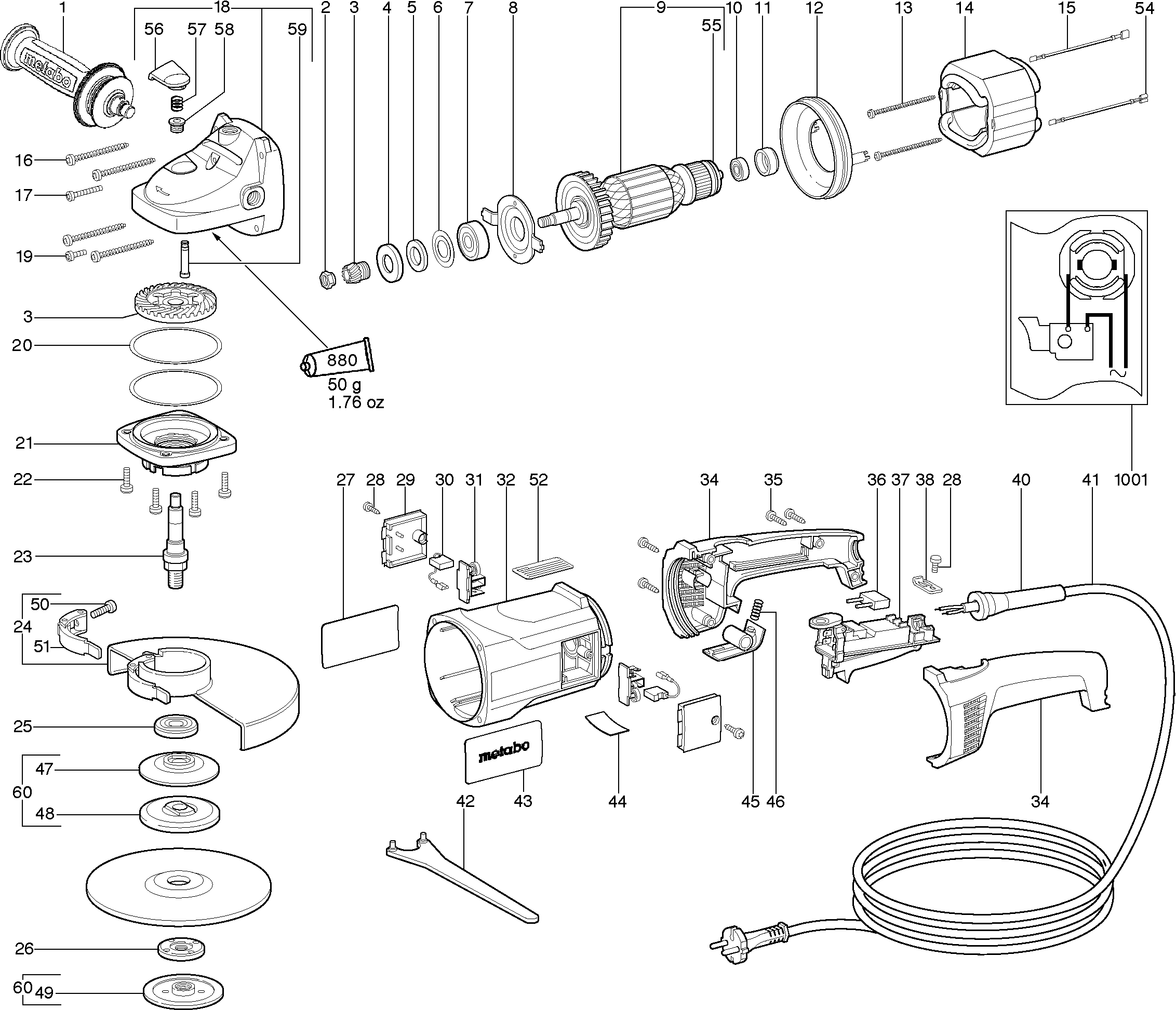 Here you will find all available parts and drawings of the 'Metabo 06415260 ( W23-230 )'. From here you can order all desired parts directly. Many parts must be ordered from the manufacturer, depending on the brand, this takes one to four weeks. All the information we have is on our website, we cannot advise you on what you need, for that you will need to return the machine for repair. Please note the following when ordering: