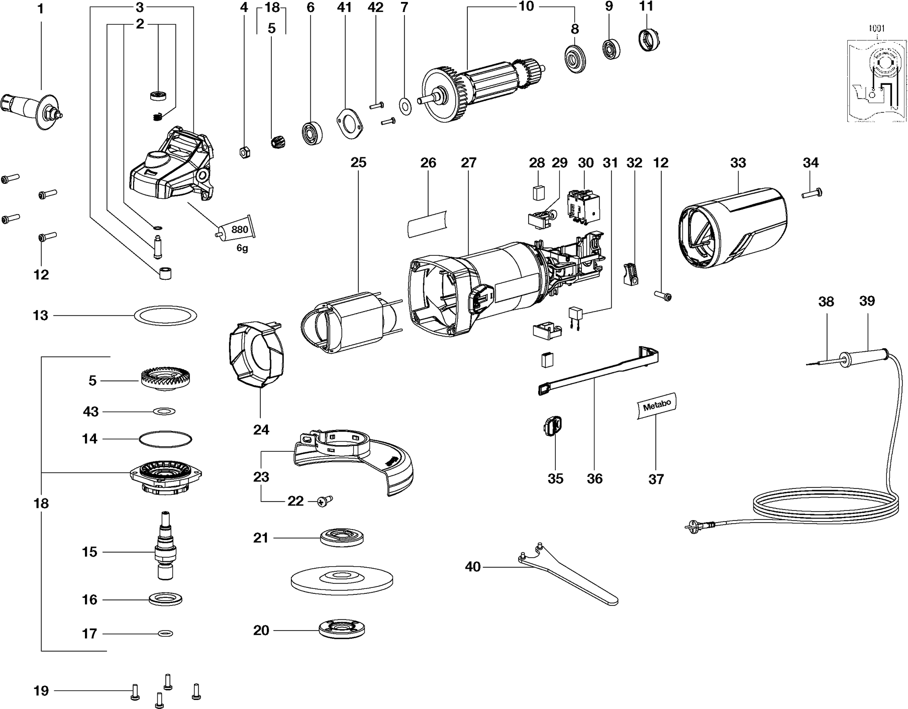 Here you will find all available parts and drawings of the 'Metabo 03607000 ( W850-115 )'. From here you can order all desired parts directly. Many parts must be ordered from the manufacturer, depending on the brand, this takes one to four weeks. All the information we have is on our website, we cannot advise you on what you need, for that you will need to return the machine for repair. Please note the following when ordering: