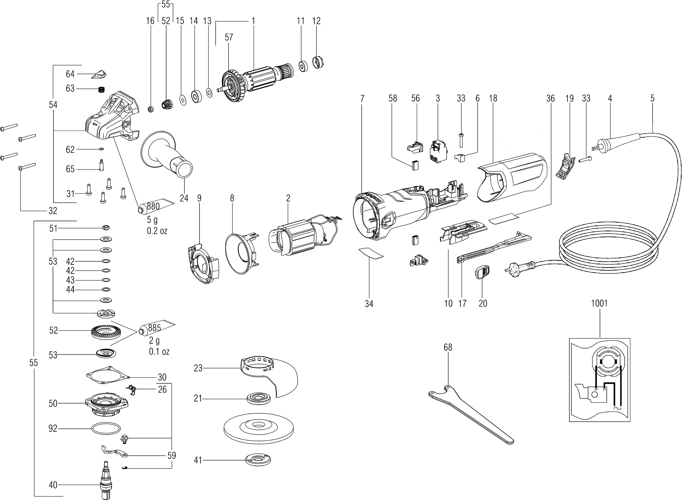 Here you will find all available parts and drawings of the 'Metabo 00350010 ( W9-100 )'. From here you can order all desired parts directly. Many parts must be ordered from the manufacturer, depending on the brand, this takes one to four weeks. All the information we have is on our website, we cannot advise you on what you need, for that you will need to return the machine for repair. Please note the following when ordering:
