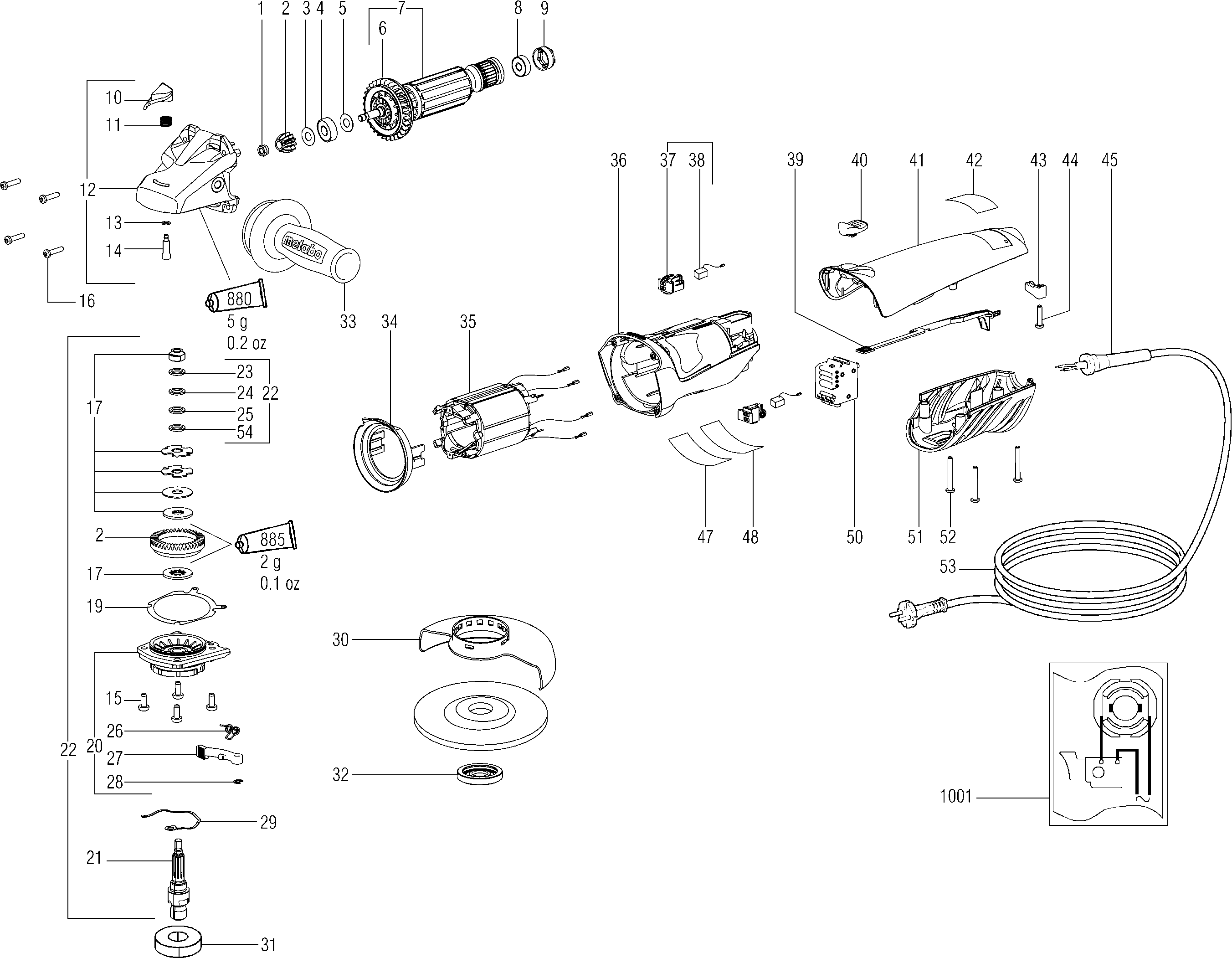 Here you will find all available parts and drawings of the 'Metabo 20100000 ( WA1000QUICK )'. From here you can order all desired parts directly. Many parts must be ordered from the manufacturer, depending on the brand, this takes one to four weeks. All the information we have is on our website, we cannot advise you on what you need, for that you will need to return the machine for repair. Please note the following when ordering: