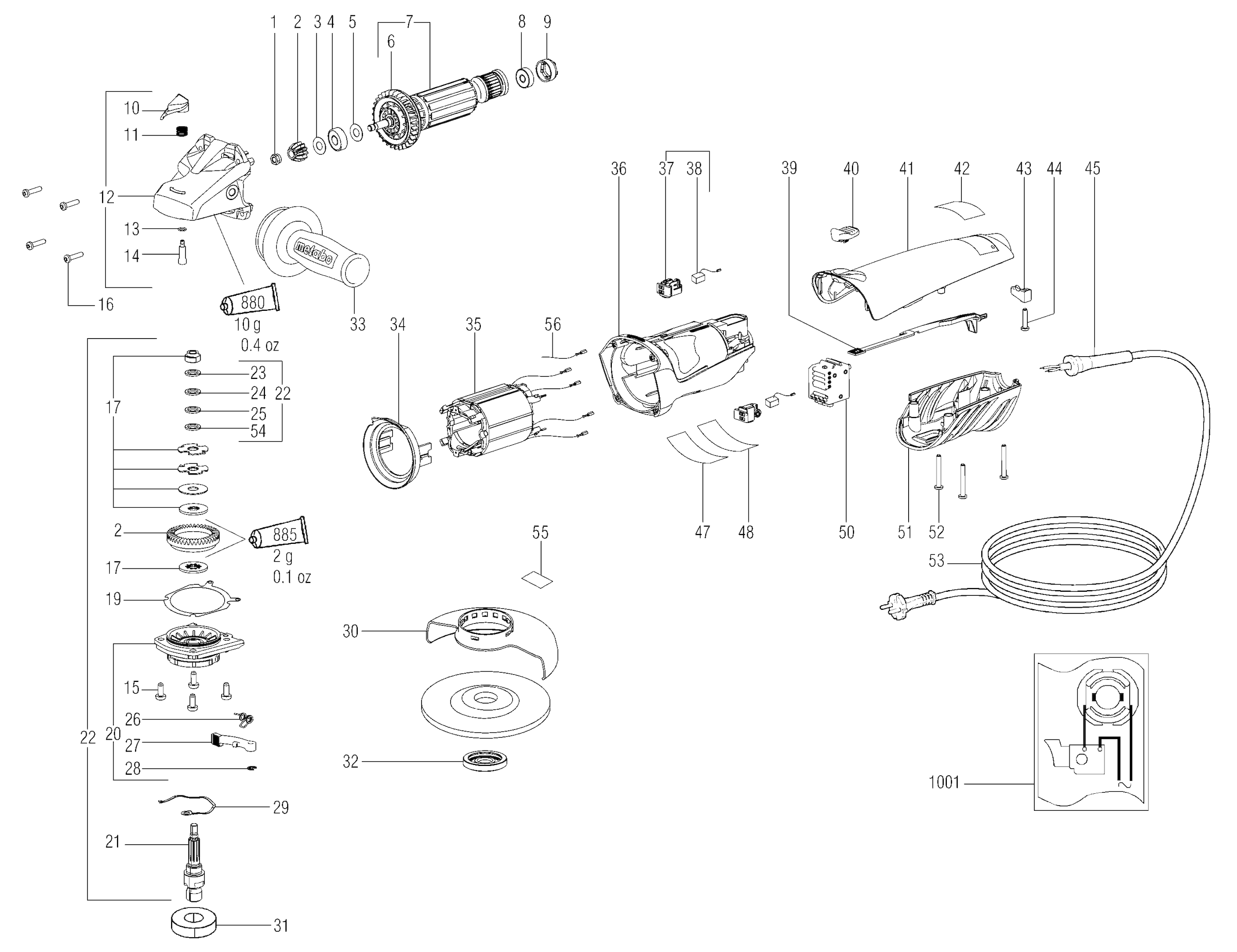 Here you will find all available parts and drawings of the 'Metabo 01101000 ( WA11-125QUICK )'. From here you can order all desired parts directly. Many parts must be ordered from the manufacturer, depending on the brand, this takes one to four weeks. All the information we have is on our website, we cannot advise you on what you need, for that you will need to return the machine for repair. Please note the following when ordering: