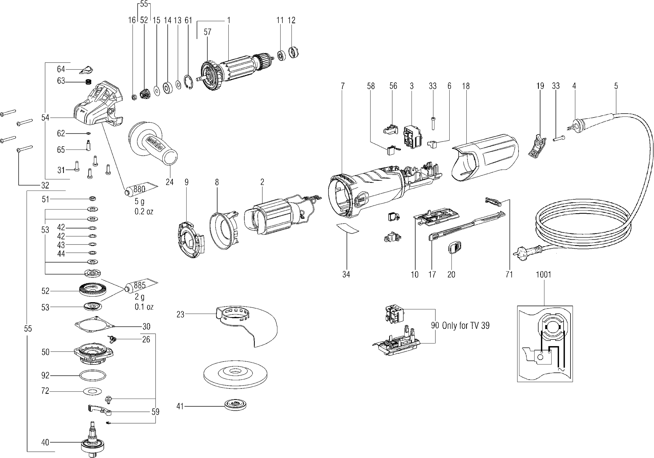 Here you will find all available parts and drawings of the 'Metabo 00422010 ( WA12-125QUICK )'. From here you can order all desired parts directly. Many parts must be ordered from the manufacturer, depending on the brand, this takes one to four weeks. All the information we have is on our website, we cannot advise you on what you need, for that you will need to return the machine for repair. Please note the following when ordering: