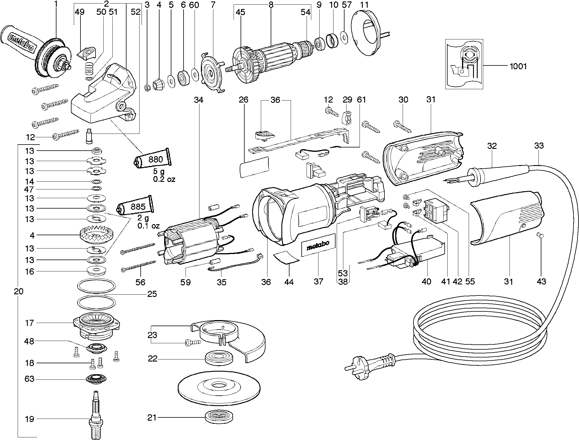 Here you will find all available parts and drawings of the 'Metabo 01450001 ( WE14-150PLUS )'. From here you can order all desired parts directly. Many parts must be ordered from the manufacturer, depending on the brand, this takes one to four weeks. All the information we have is on our website, we cannot advise you on what you need, for that you will need to return the machine for repair. Please note the following when ordering: