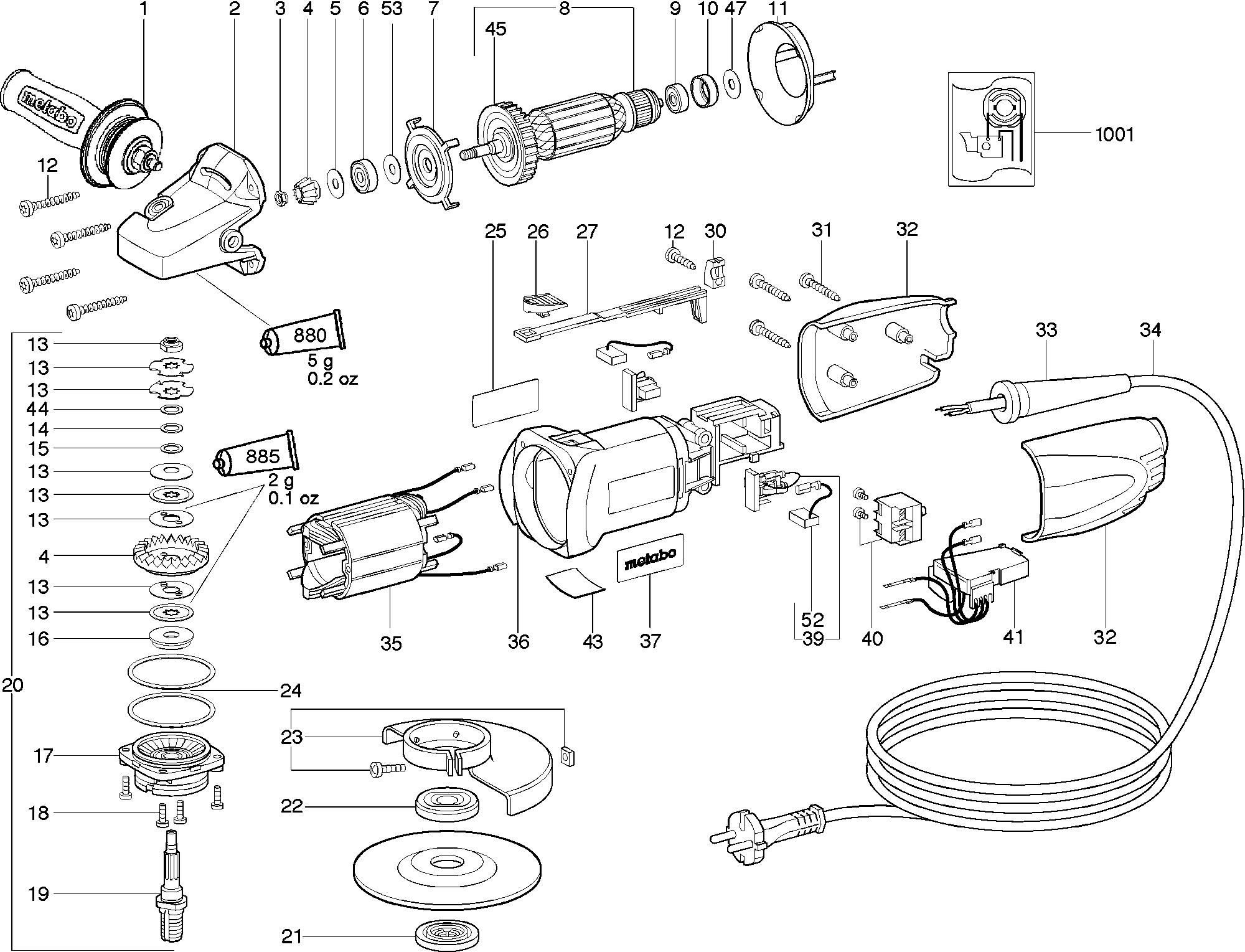 Here you will find all available parts and drawings of the 'Metabo 00925000 ( WE9-125QUICK )'. From here you can order all desired parts directly. Many parts must be ordered from the manufacturer, depending on the brand, this takes one to four weeks. All the information we have is on our website, we cannot advise you on what you need, for that you will need to return the machine for repair. Please note the following when ordering: