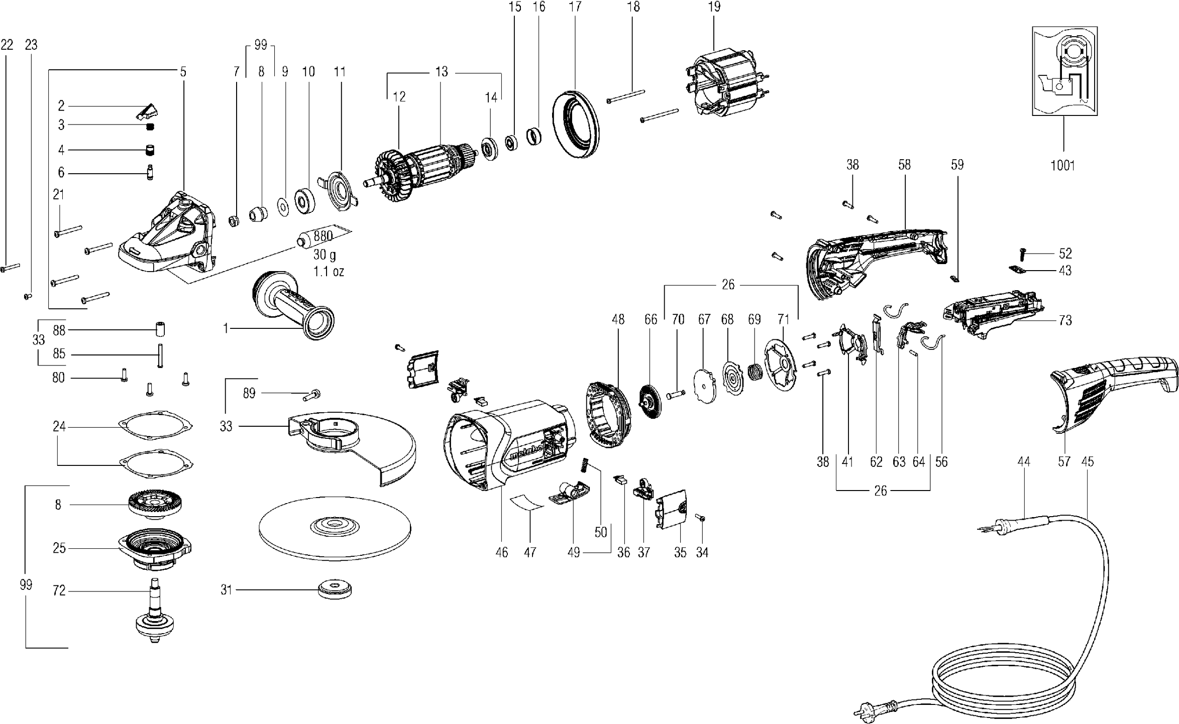 Here you will find all available parts and drawings of the 'Metabo 06481000 ( WEPBA24-230MVTQUICK )'. From here you can order all desired parts directly. Many parts must be ordered from the manufacturer, depending on the brand, this takes one to four weeks. All the information we have is on our website, we cannot advise you on what you need, for that you will need to return the machine for repair. Please note the following when ordering:
