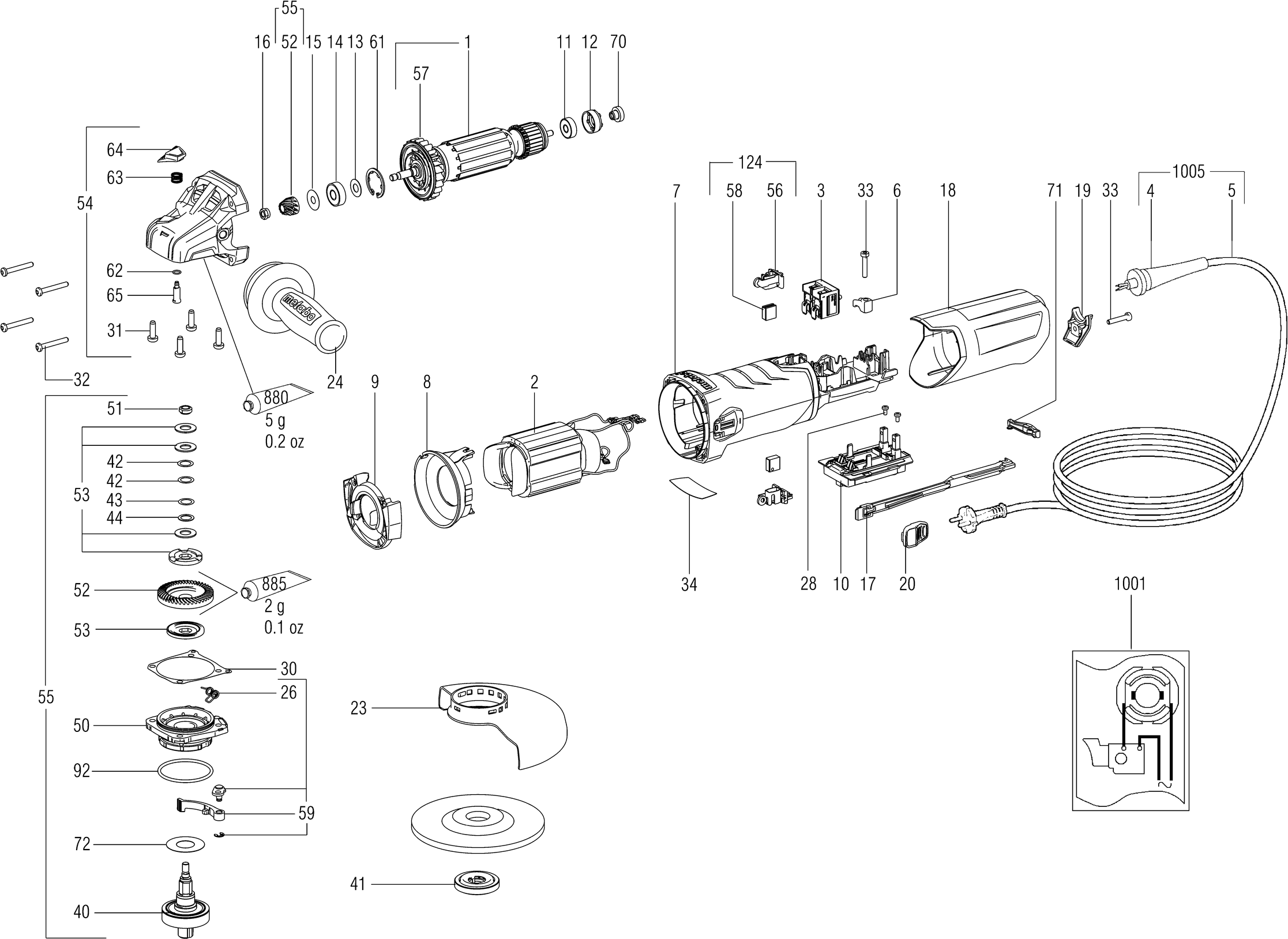 Here you will find all available parts and drawings of the 'Metabo 00506001 ( WEVA15-150QUICK )'. From here you can order all desired parts directly. Many parts must be ordered from the manufacturer, depending on the brand, this takes one to four weeks. All the information we have is on our website, we cannot advise you on what you need, for that you will need to return the machine for repair. Please note the following when ordering: