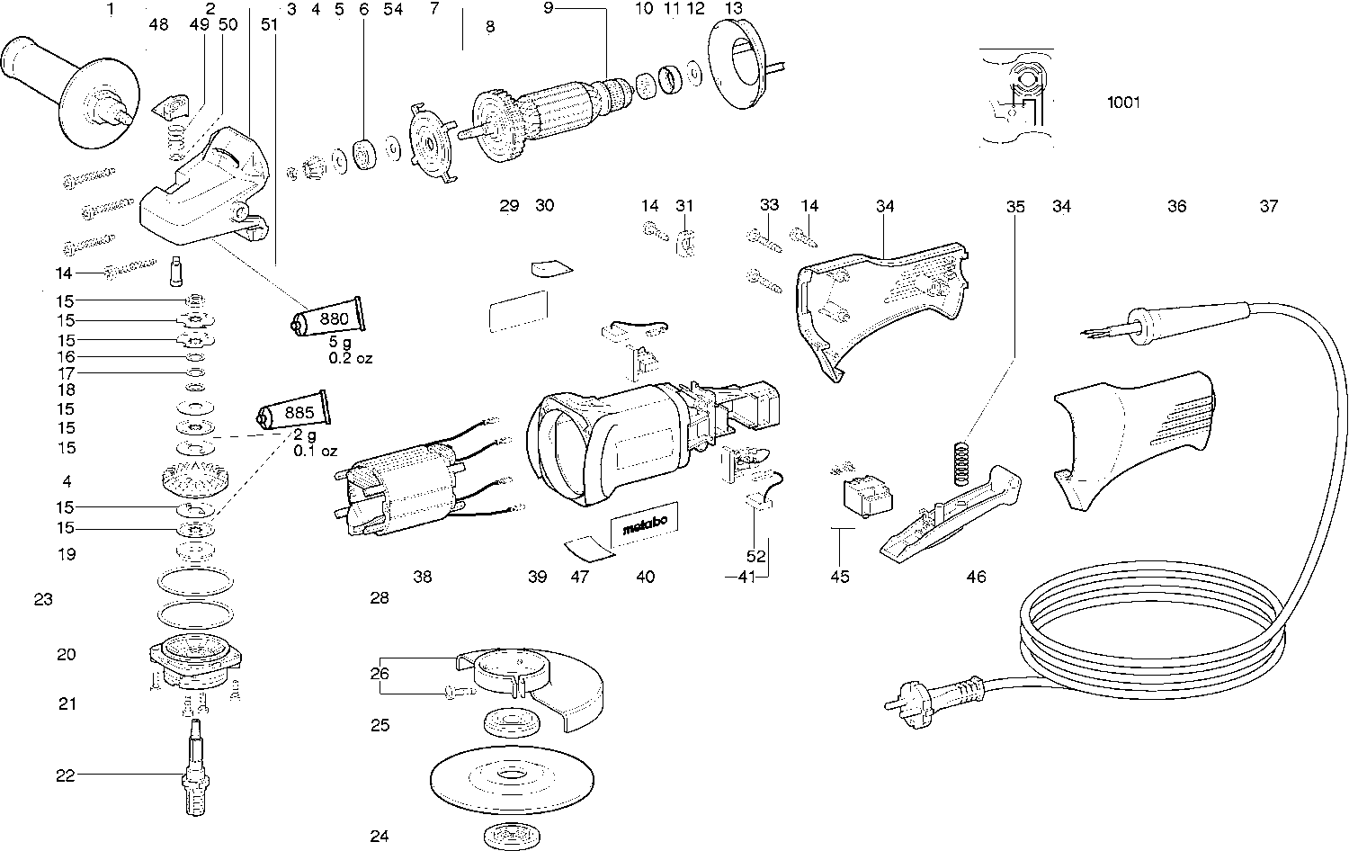Here you will find all available parts and drawings of the 'Metabo 06210001 ( WP7-115QUICK )'. From here you can order all desired parts directly. Many parts must be ordered from the manufacturer, depending on the brand, this takes one to four weeks. All the information we have is on our website, we cannot advise you on what you need, for that you will need to return the machine for repair. Please note the following when ordering:
