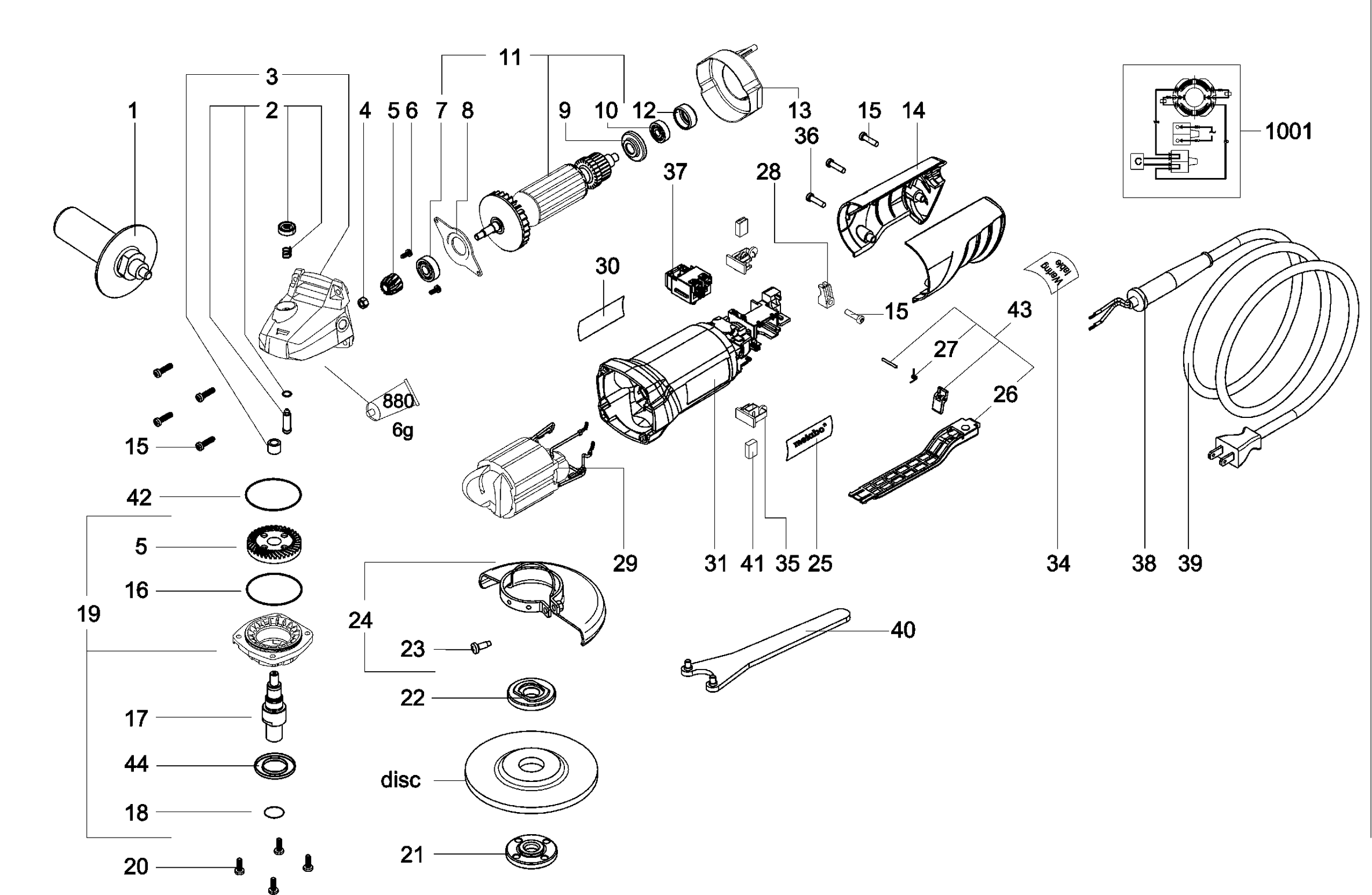 Here you will find all available parts and drawings of the 'Metabo 01235000 ( WP850-125 )'. From here you can order all desired parts directly. Many parts must be ordered from the manufacturer, depending on the brand, this takes one to four weeks. All the information we have is on our website, we cannot advise you on what you need, for that you will need to return the machine for repair. Please note the following when ordering:
