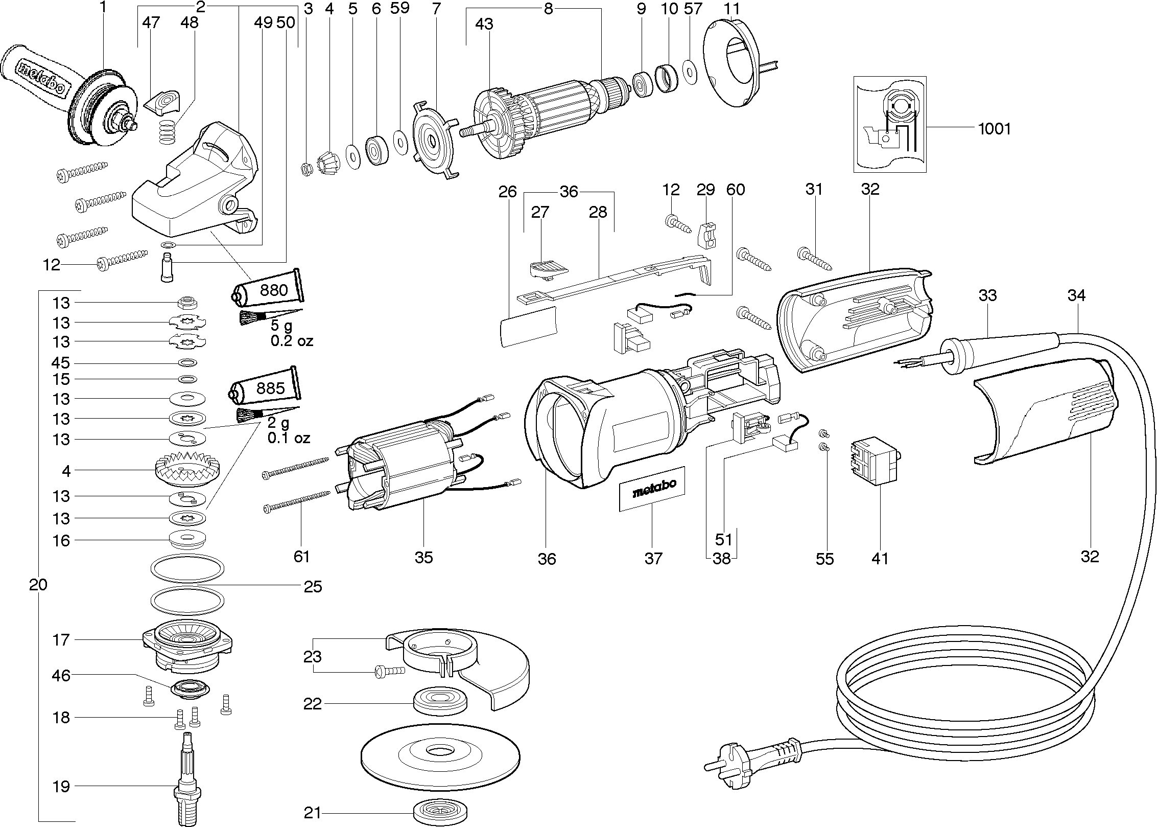 Technical drawing of model Metabo 20035011 ( WQ1000 )