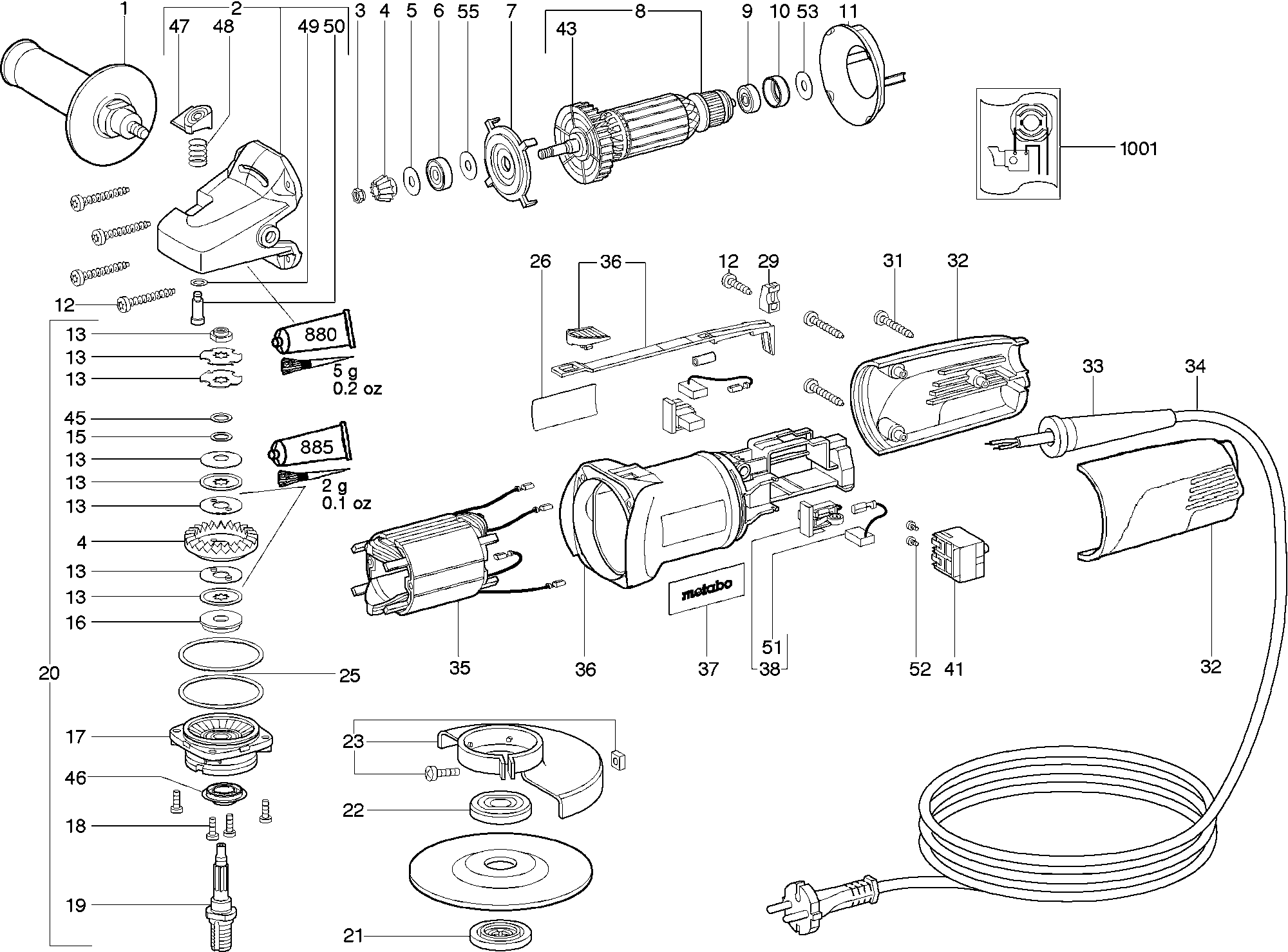 Technical drawing of model Metabo 20011000 ( WQ125SP-WQEURO )